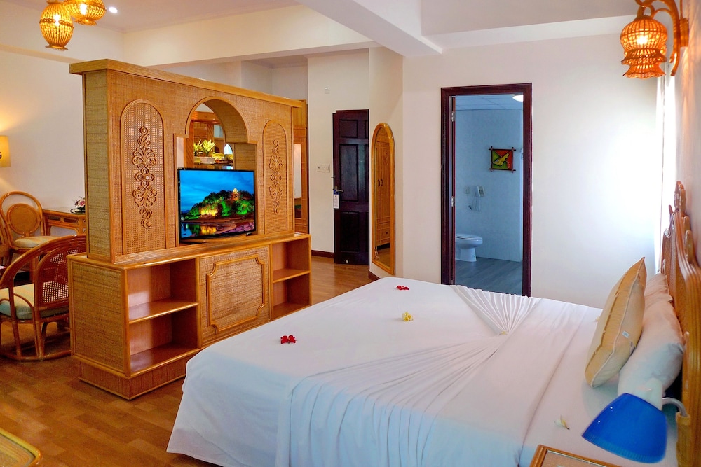 W czasie pobytu w obiekcie takim jak Green Hotel Nha Trang zamieszkasz w samym centrum miasta Nha Trang, pięć minut piechotą od miejsc takich jak Vincom Plaza Le Thanh Ton i Nocny targ w Nha Trang. Ten hotel znajduje się 23,1 km od atrakcji takiej jak Plaża Bai Dai i 0,5 km od miejsca takiego jak Wieża Tram Huong. Poczuj się jak w domu w 66 pokojach, których wyposażenie to minibar i telewizor płaskoekranowy. Bezpłatny bezprzewodowy dostęp do Internetu zapewni łączność ze światem, a telewizja kablowa — rozrywkę. Prywatna łazienka — wyposażenie: wanna połączona z prysznicem, bezpłatne przybory toaletowe i suszarki do włosów. Udogodnienia obejmują telefon oraz sejfy i biurka. Udogodnienia biznesowe to centrum biznesowe, wynajem limuzyn i samochodów oraz bezpłatne czasopisma w holu. Płatne udogodnienia to transport z i na lotnisko (na życzenie) i odbiór gości z dworca kolejowego. Do pokoju przylega taras, z którego roztacza się piękny widok. Dostępne są również takie udogodnienia, jak bezpłatny bezprzewodowy dostęp do Internetu i obsługa portierska. Ten hotel oferuje również udogodnienia takie jak sklepy z pamiątkami i czasopismami i telewizor w holu. Hotel: znajduje się tutaj restauracja Jasmine, gdzie wydawane są posiłki takie jak obiad i kolacja. Jedzenie i picie serwują również miejsca takie jak kawiarnia i do Twojej dyspozycji pozostaje także obsługa pokojowa (w określonych godzinach). Ożywcze napoje znajdziesz w jednym z lokali: bar/salon klubowy. Hotel oferuje bezpłatne śniadanie w formie bufetu codziennie od 6 do 9.