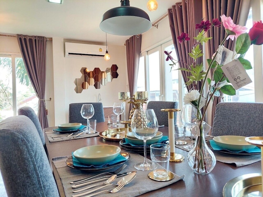 W czasie pobytu w obiekcie takim jak ten dom wakacyjny w mieście Udon Thani (Nong Khon Kwang) znajdziesz się pięć minut samochodem od atrakcji takich jak Central Udon i Park pamięci Królowej Sirikit. Domek letniskowy znajduje się 1,6 km od atrakcji takiej jak Tajsko-Chińskie Centrum Kultury i 1,7 km od miejsca takiego jak Sanjao Pu-Ya. Domek letniskowy z klimatyzacją zapewni Ci wygodę, oferując dostęp do takich udogodnień jak aneks kuchenny, której wyposażenie to lodówka i płyta kuchenna. Do prywatnego użytku gości jest także balkon. Bezpłatny bezprzewodowy dostęp do internetu zapewni łączność ze światem, a 75-cal. telewizor płaskoekranowy i telewizja cyfrowa — rozrywkę. Prywatna łazienka (wanna i prysznic osobno) — do dyspozycji gości są głęboka wanna i bezpłatne przybory toaletowe. Odległości są podane z dokładnością do 0,1 kilometra.