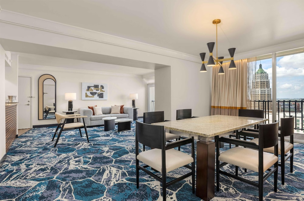 W czasie pobytu w obiekcie Hilton Palacio Del Rio znajdziesz się w samym centrum miasta takiego jak San Antonio, kilka kroków od atrakcji takich jak Dzielnica La Villita i Trasa spacerowa nad rzeką. Hotel znajduje się 1,5 km od atrakcji takiej jak Henry B. González Convention Center i 1,7 km od miejsca takiego jak Stadion Alamodome. Poczuj się jak w domu w 485 pokojach, których wyposażenie to telewizor LCD. Do pokoju przylega balkon. Płatny przewodowy i bezprzewodowy dostęp do internetu zapewnią łączność ze światem, a płatne kanały TV i konsola do gier — rozrywkę. Wyposażenie łazienki: markowe przybory toaletowe i suszarki do włosów. Udogodnienia biznesowe to centrum biznesowe, wynajem limuzyn i samochodów oraz ekspresowe wymeldowanie. Ten obiekt typu hotel zapewnia udogodnienia konferencyjne takie jak pomieszczenia konferencyjne i sale konferencyjne. Dostępne udogodnienia rekreacyjne to basen odkryty i całodobowe centrum fitness. Ten hotel oferuje również udogodnienia takie jak bezpłatny bezprzewodowy dostęp do internetu, obsługa portierska i sklepy z pamiątkami i czasopismami. W obiekcie takim jak hotel do dyspozycji gości pozostają Coffee Cupboard i kawiarnia. Ożywcze napoje znajdziesz w jednym z lokali: bar/salon klubowy. Śniadanie na wynos jest podawane codziennie od 7 do 11 za opłatą.