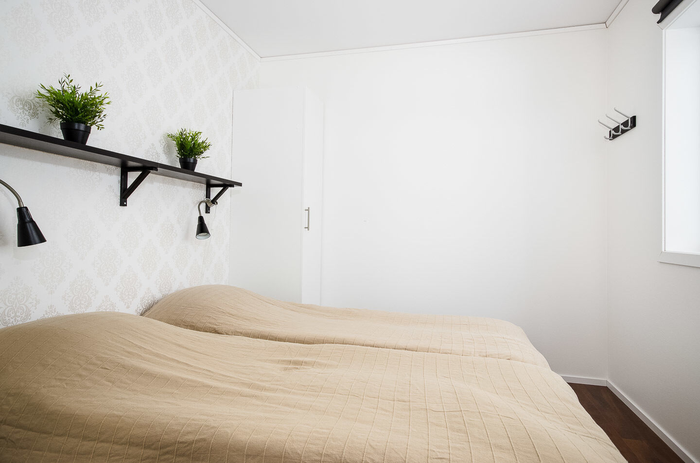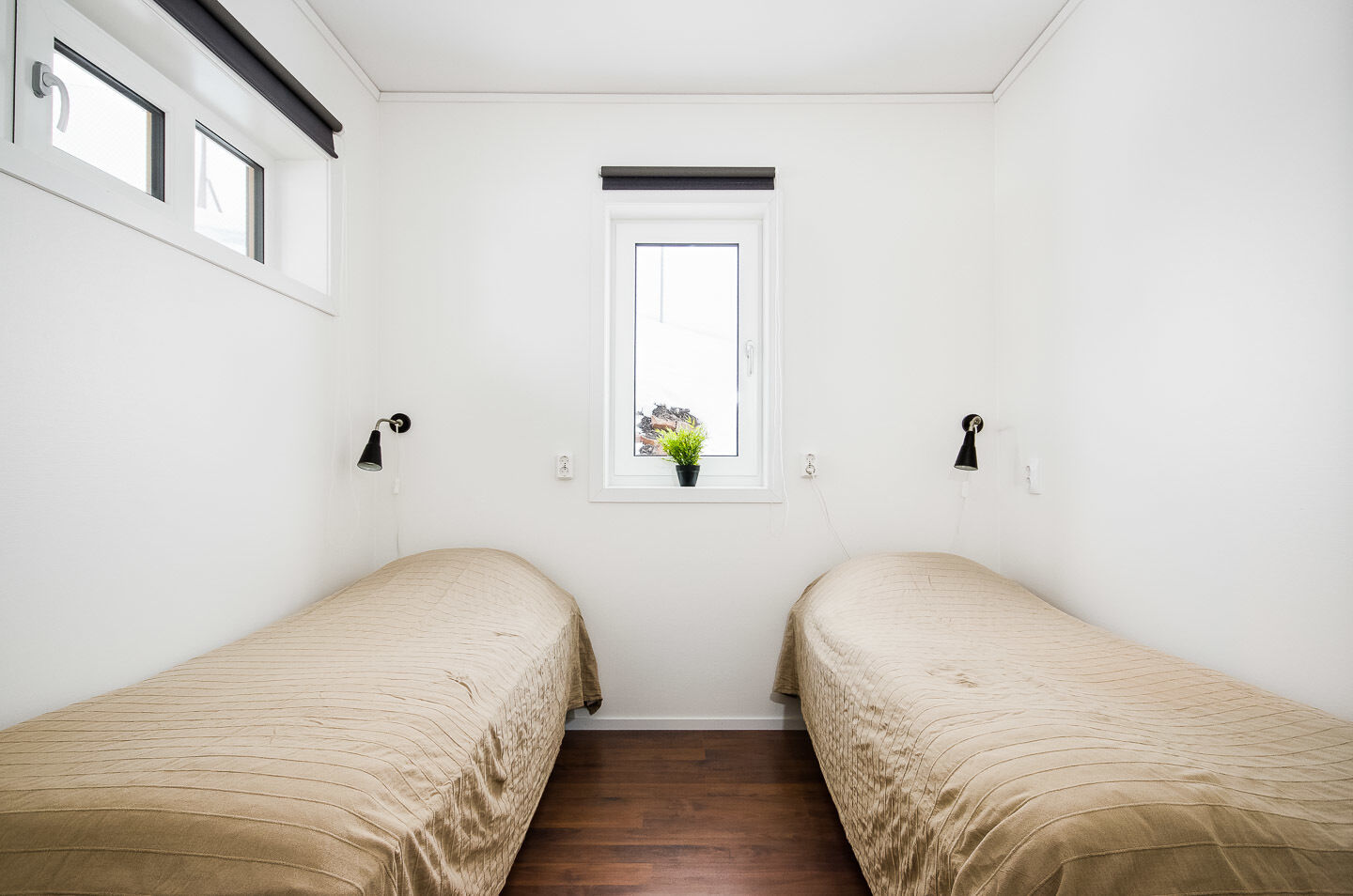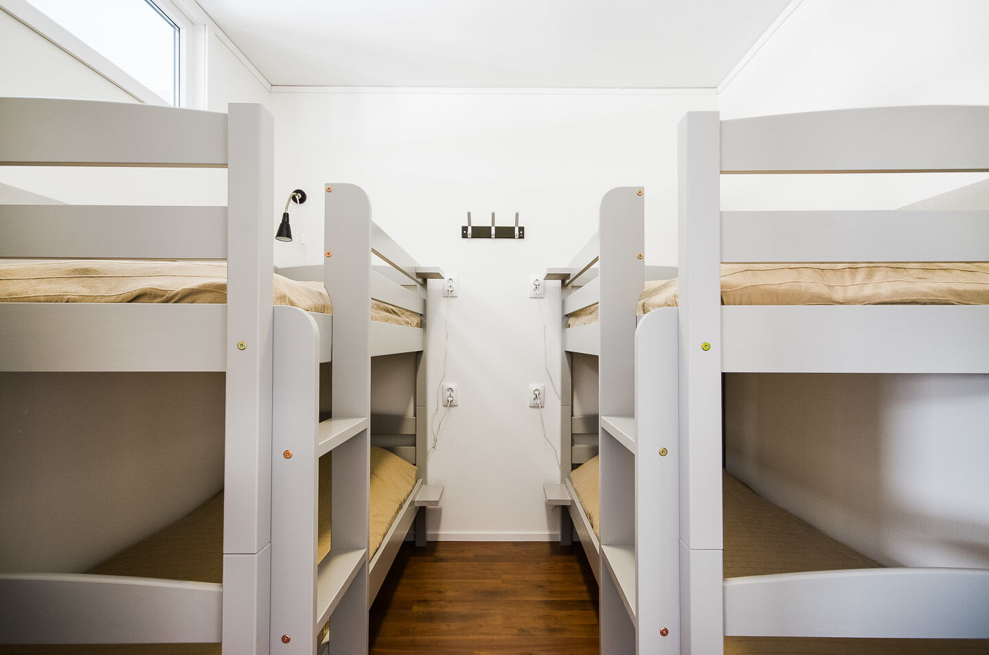 Sypialnie W jednej sypialni znajduje się łóżko podwójne, w innej dwa łóżka pojedyncze, w kolejnej piętrowe łóżko, a w czwartej dwa piętrowe łóżka.