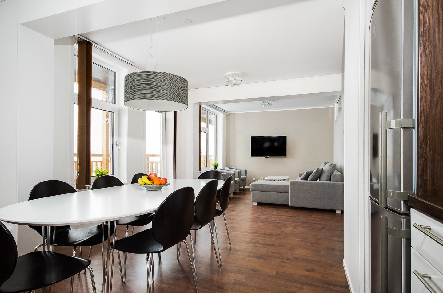 Komfortowe i dobrze wyposażone mieszkania o powierzchni 82 m². Mieszkania posiadają 10 standardowych miejsc noclegowych, rozdzielonych między cztery sypialnie. Kuchnia i salon mają przyjazny, otwarty układ z wyjściem na balkon/taras. Do dyspozycji są dwie łazienki, w tym jedna z sauną. Mieszkania, które akceptują zwierzęta, znajdują się na parterze.