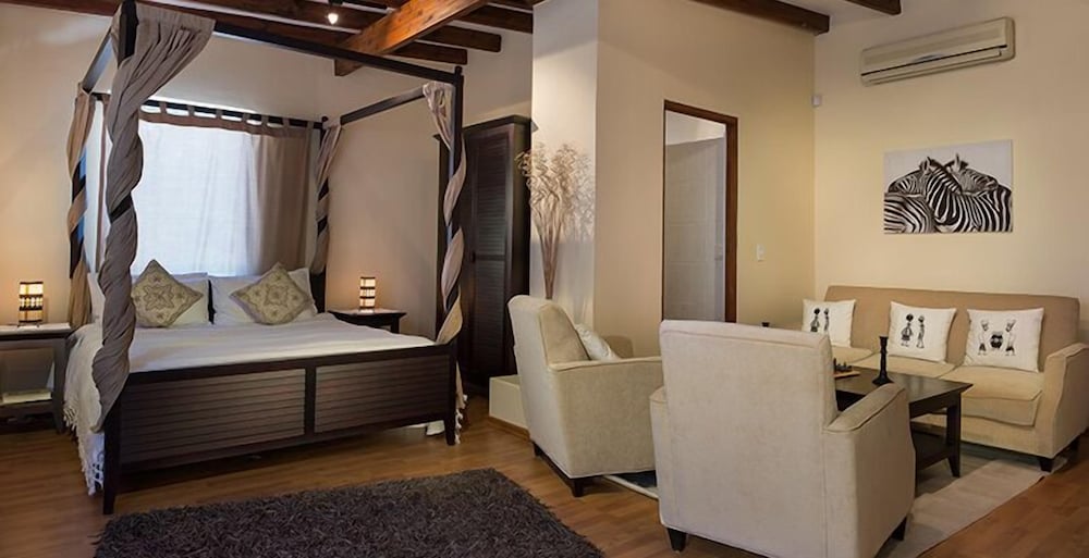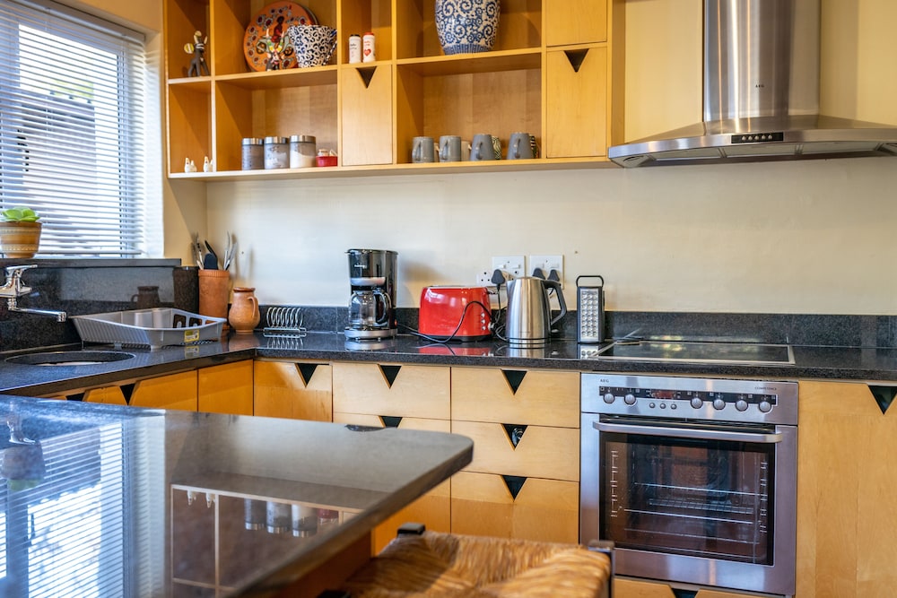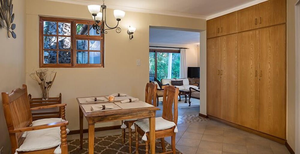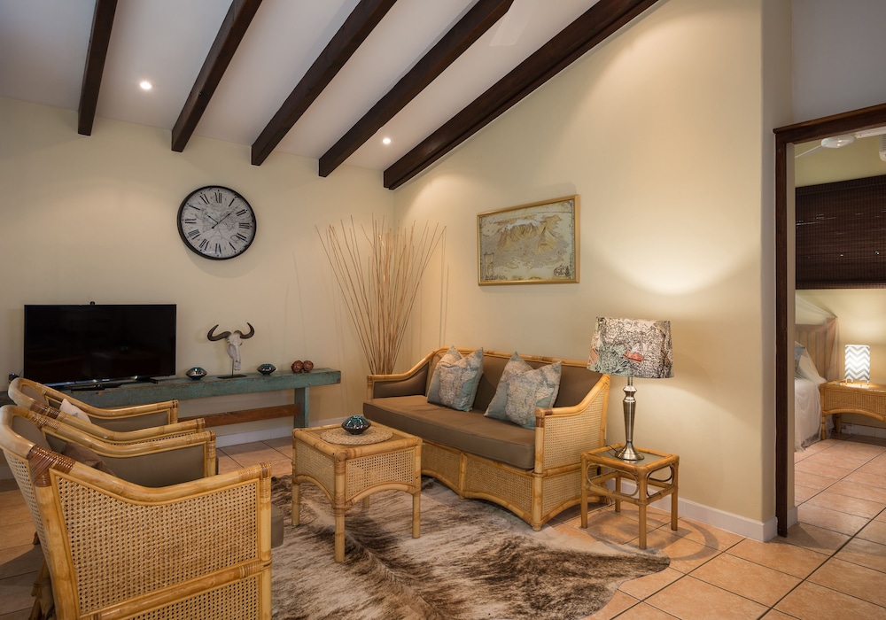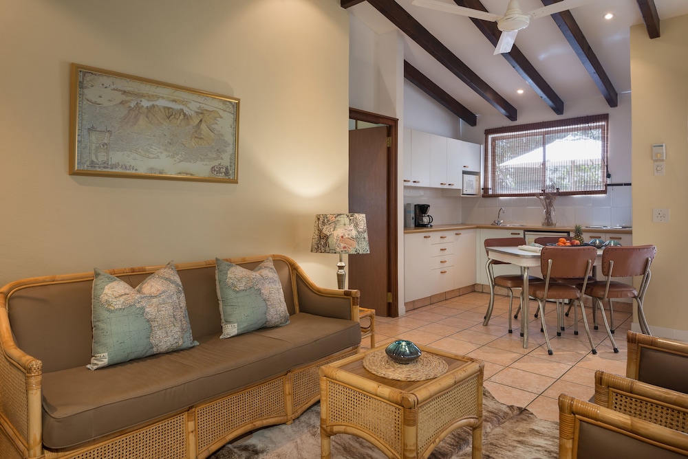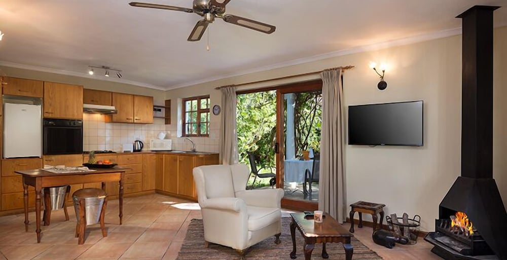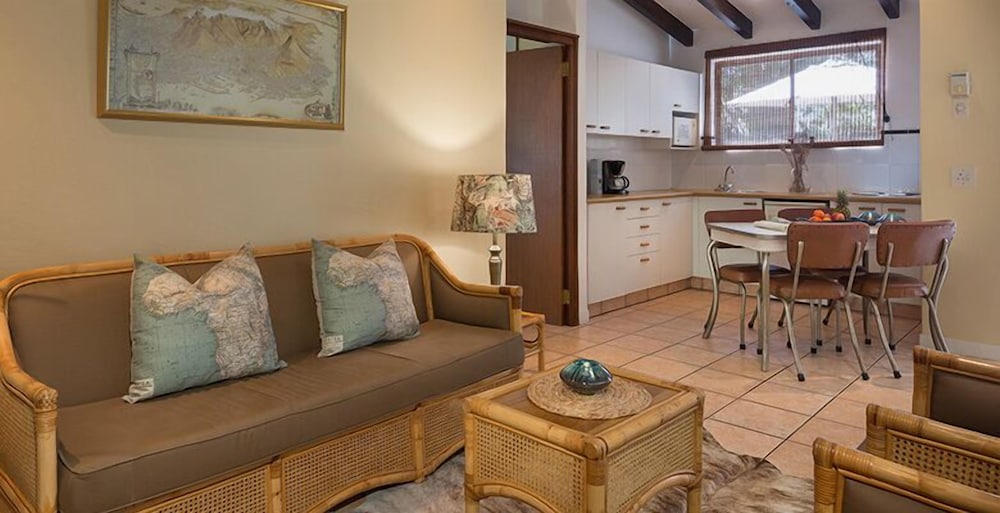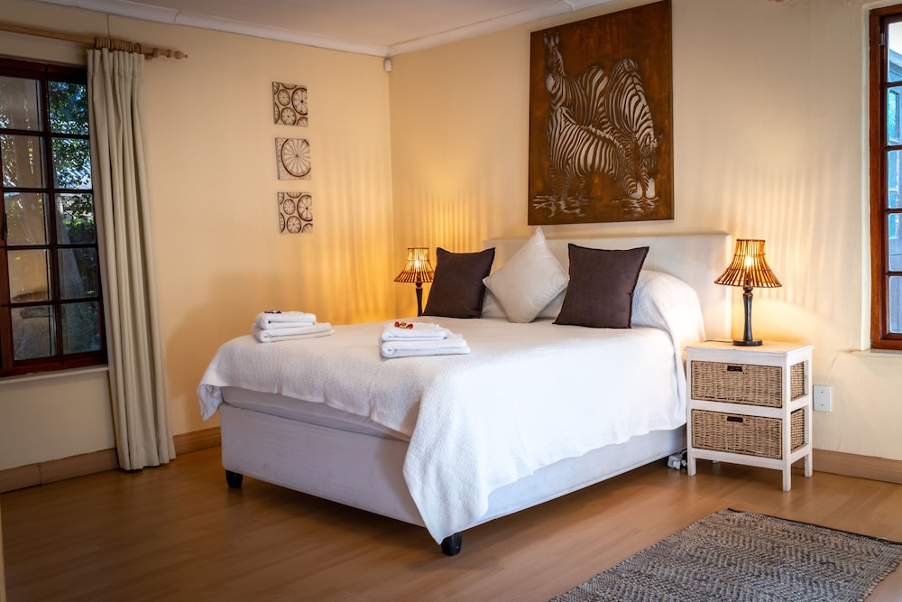 Udogodnienia biznesowe to usługi pralni chemicznej i pralnia. Udogodnienia na miejscu to bezpłatne parkowanie samodzielne. Do pokoju przylegają taras i ogród, z których roztacza się piękny widok. Dostępne są również takie udogodnienia rekreacyjne, jak basen odkryty. Ten chatka oferuje również udogodnienia takie jak bezpłatny bezprzewodowy dostęp do internetu i grill. Jakość oceniona przez Tourism Grading Council of South Africa (TGCSA) – oficjalną organizację ds. kontroli jakości w Republice Południowej Afryki.- Opłata za łóżko-dostawkę: 150.0 ZAR za noc