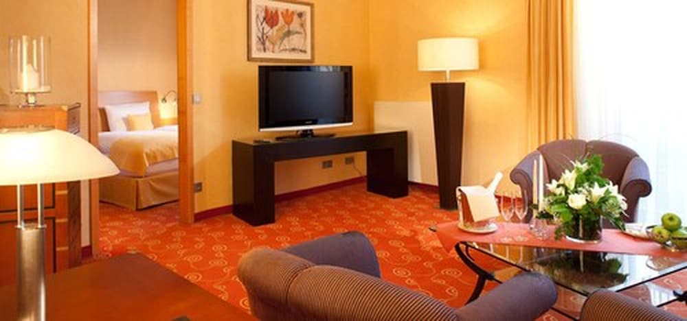 Udogodnienia biznesowe to centrum biznesowe, usługi pralni chemicznej oraz recepcja całodobowa. Udogodnienia na miejscu to bezpłatne parkowanie samodzielne. Zrelaksuj się w spa, które oferuje masaż, zabiegi na ciało i zabiegi na twarz. Dostępne udogodnienia rekreacyjne to 2 baseny kryte, siłownia oraz sauna. Ten hotel oferuje takie udogodnienia jak bezpłatny bezprzewodowy dostęp do internetu, salon fryzjerski i pomoc w organizacji biletów/wycieczek. Do dyspozycji gości: restauracja i kawiarnia. W obiekcie takim jak hotel do Twojej dyspozycji pozostaje także obsługa pokojowa (w określonych godzinach). Ożywcze napoje znajdziesz w jednym z lokali: bar/salon klubowy i bar przy basenie. Hotelstars Union dokonuje oficjalnej klasyfikacji obiektów noclegowych w tym kraju (Niemcy). Klasyfikacja tego obiektu to 4 star Superior, co przedstawiono na tej stronie jako 4,5-gwiazdkowy.