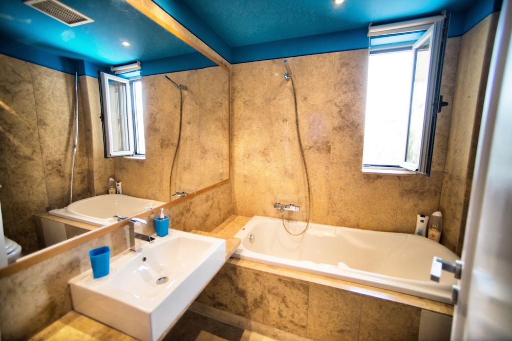 When you stay at this villa in Hersonissos, you'll be near the beach and 7 minutes by car from Ekklisia Agios Konstantinos. This 4-star villa is 14.3 mi (23 km) from Heraklion Port and 5.1 mi (8.2 km) from Star Beach Water Park. Make yourself comfortable in this air-conditioned villa, which features a fireplace and a private pool. There's a private balcony or patio. A kitchen is outfitted with a refrigerator, an oven, and a microwave. Complimentary wireless Internet access keeps you connected, and an LCD television is provided for your entertainment. Distances are displayed to the nearest 0.1 mile and kilometer.