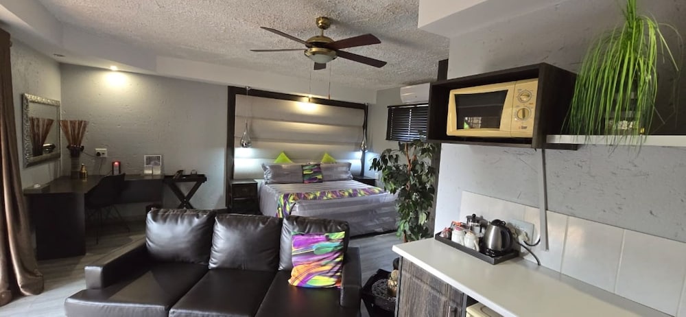 Położony w mieście Roodeplaat, Bushmans Rock Country Lodge znajduje się nad brzegiem rzeki, 15 minut samochodem od atrakcji takich jak Zapora Roodeplaat i Szpital Urologiczny w Pretorii. Dom na wsi (spa) znajduje się 11,8 km od atrakcji takiej jak Narodowy Ogród Botaniczny w Pretorii i 16 km od miejsca takiego jak Ambasada Polski. Poczuj się jak w domu w 48 oryginalnie umeblowane pokojach, których wyposażenie to aneksy kuchenne (lodówka i kuchenka mikrofalowa). Do pokoju przylega balkon lub patio. Bezpłatny bezprzewodowy dostęp do internetu zapewni łączność ze światem, a telewizor płaskoekranowy i satelitarna — rozrywkę. Udogodnienia obejmują sejfy i biurka oraz sprzątanie codziennie. Odległości są podane z dokładnością do 0,1 kilometra.