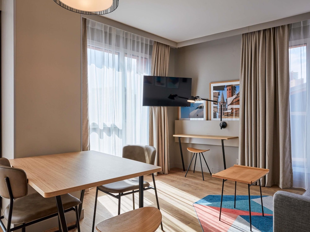 W czasie pobytu w obiekcie takim jak Aparthotel Adagio Toulouse Centre La Grave zamieszkasz w samym centrum miasta Tuluza, 15 minut od atrakcji takich jak Siedziba Firmy Airbus i Muzeum Plakatu. Aparthotel znajduje się 0,4 km od atrakcji takiej jak Galerie Château d'Eau i 0,6 km od miejsca takiego jak Le Beau Manège. Poczuj się jak w domu w 114 klimatyzowanych pokojach, których wyposażenie to aneksy kuchenne (lodówka i płyta kuchenna). Bezpłatny bezprzewodowy dostęp do internetu zapewni łączność ze światem, a 32-cal. telewizor płaskoekranowy i telewizja cyfrowa — rozrywkę. Udogodnienia obejmują telefon oraz sejfy na laptopa i kuchenki mikrofalowe. Udogodnienia biznesowe to usługi pralni chemicznej, recepcja całodobowa oraz pralnia. Udogodnienia na miejscu to samodzielne parkowanie (za opłatą). Ten aparthotel dla niepalących został zbudowany w 2023 roku. Śniadanie w formie bufetu jest podawane codziennie od 6 do 10 za opłatą. LOCALIZE