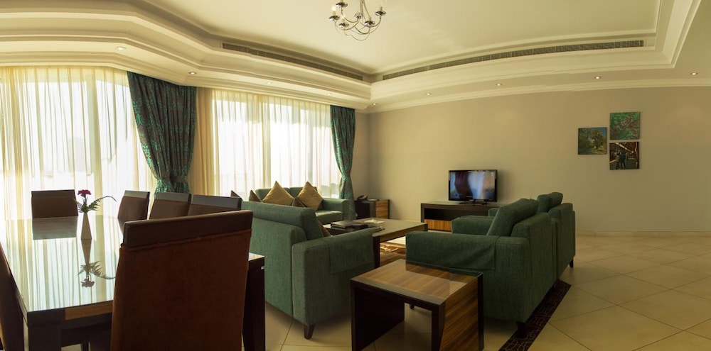 W czasie pobytu w obiekcie takim jak Al Majaz Premiere Hotel Apartment znajdziesz się w samym centrum miasta Sharjah, 15 minut samochodem od miejsc takich jak Złoty Suk i Centrum handlowe City Centre Deira. Aparthotel (w stylu luksusowym) znajduje się 16,8 km od atrakcji takiej jak Światowe Centrum Handlu w Dubaju i 19,3 km od miejsca takiego jak Przystań statków wycieczkowych w Dubaju. Poczuj się jak w domu w 75 klimatyzowanych pokojach, których wyposażenie to kuchnie (lodówka i płyta kuchenna). Do pokoju przylega balkon. Bezpłatny bezprzewodowy dostęp do internetu zapewni łączność ze światem, a telewizor LCD i kablowa — rozrywkę. Udogodnienia obejmują telefon oraz sejfy i bezpłatne czasopisma. Odległości są podane z dokładnością do 0,1 kilometra.