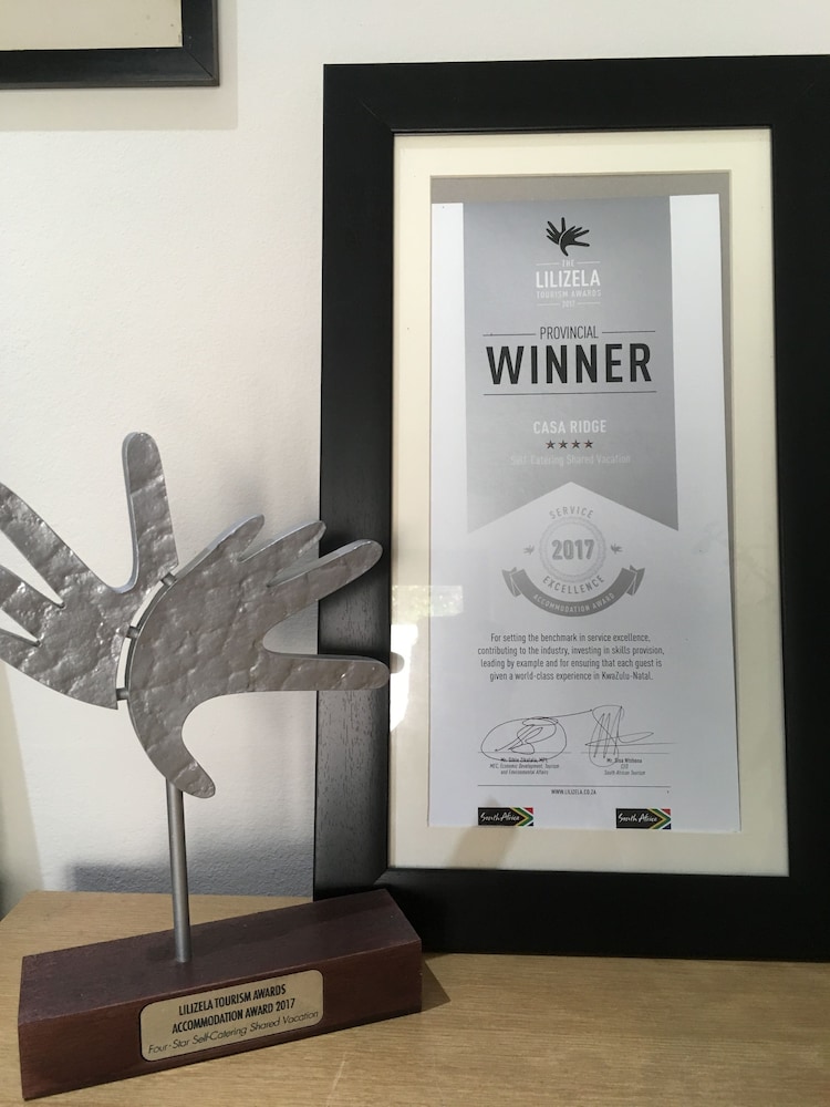 Położony w mieście uMhlanga, Casa Ridge znajduje się nad morzem, 10 minut samochodem od atrakcji takich jak Szlak przyrodniczy Umhlanga Lagoon i Centrum Handlowe Gateway Theatre. Apartament znajduje się 2,3 km od atrakcji takiej jak Plaża główna w Umhlanga i 7,6 km od miejsca takiego jak Ogrody japońskie. Poczuj się jak w domu w 3 oryginalnie udekorowane pokojach, których wyposażenie to aneksy kuchenne (lodówka i płyta kuchenna). Wyposażenie łóżek to pillowtop oraz pościel z egipskiej bawełny. Do pokoju przylega balkon lub patio. Bezpłatny bezprzewodowy dostęp do internetu zapewni łączność ze światem, a 40-cal. telewizor płaskoekranowy i telewizja satelitarna — rozrywkę. Udogodnienia biznesowe to usługi pralni chemicznej, personel wielojęzyczny oraz przechowalnia bagażu. Udogodnienia na miejscu to bezpłatne parkowanie samodzielne. Do pokoju przylegają taras i ogród, z których roztacza się piękny widok. Dostępne są również takie udogodnienia rekreacyjne, jak basen odkryty. Ten apartament oferuje udogodnienia takie jak bezpłatny bezprzewodowy dostęp do internetu, teren piknikowy i grill. Jakość oceniona przez Tourism Grading Council of South Africa (TGCSA) – oficjalną organizację ds. kontroli jakości w Republice Południowej Afryki.