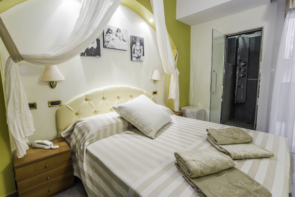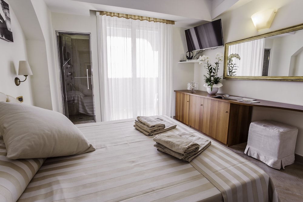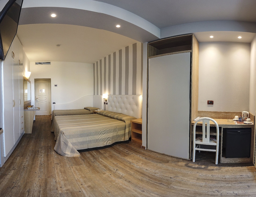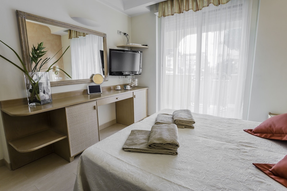W czasie pobytu w obiekcie takim jak Hotel Derby Exclusive w mieście Cervia znajdziesz się na plaży, 15 minut samochodem od atrakcji takich jak Park rozrywki Mirabilandia i Plaża Papeete. Hotel (przy plaży) znajduje się 0,3 km od atrakcji takiej jak Tor minigolfa Centrale i 0,3 km od miejsca takiego jak Sala zabaw Hippy. Poczuj się jak w domu w 48 pokojach, których wyposażenie to minibar i telewizor płaskoekranowy. Bezpłatny bezprzewodowy dostęp do internetu zapewni łączność ze światem, a telewizja satelitarna — rozrywkę. Prywatna łazienka — wyposażenie: prysznic, prysznic z deszczownicą i bezpłatne przybory toaletowe. Udogodnienia obejmują sejfy i biurka oraz sprzątanie codziennie. Odległości są podane z dokładnością do 0,1 kilometra.