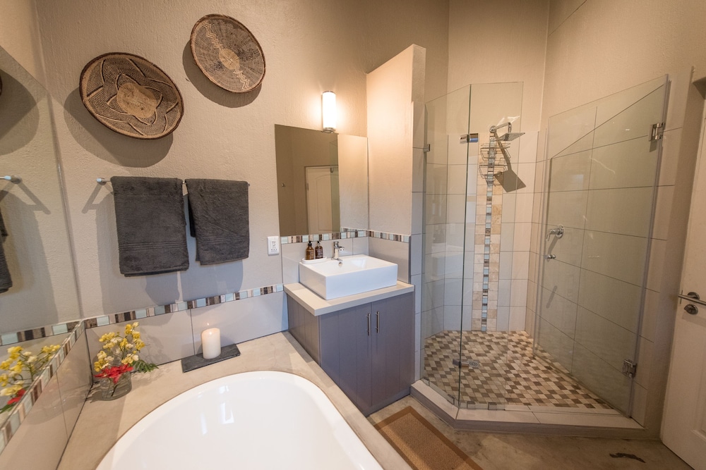 Udogodnienia biznesowe to usługi pralni chemicznej, przechowalnia bagażu oraz sejf w recepcji. Płatne udogodnienia to transport z i na lotnisko (całą dobę). Dostępna jest także taka usługa jak bezpłatne parkowanie samodzielne. Do pokoju przylegają taras i ogród, z których roztacza się piękny widok. Dostępne są również takie udogodnienia rekreacyjne, jak basen odkryty. Ten dom gościnny oferuje również udogodnienia takie jak bezpłatny bezprzewodowy dostęp do internetu, obsługa portierska i teren piknikowy.- Opłata za transport z lotniska i na lotnisko: 350 ZAR za osobę