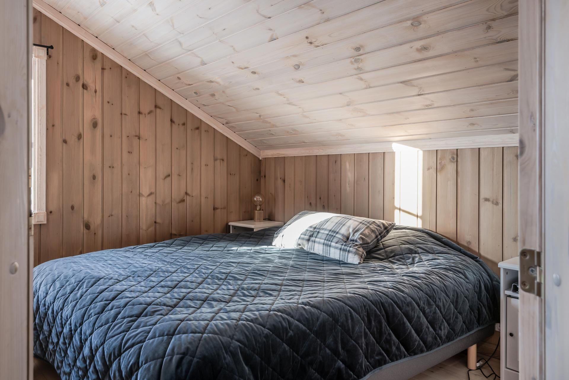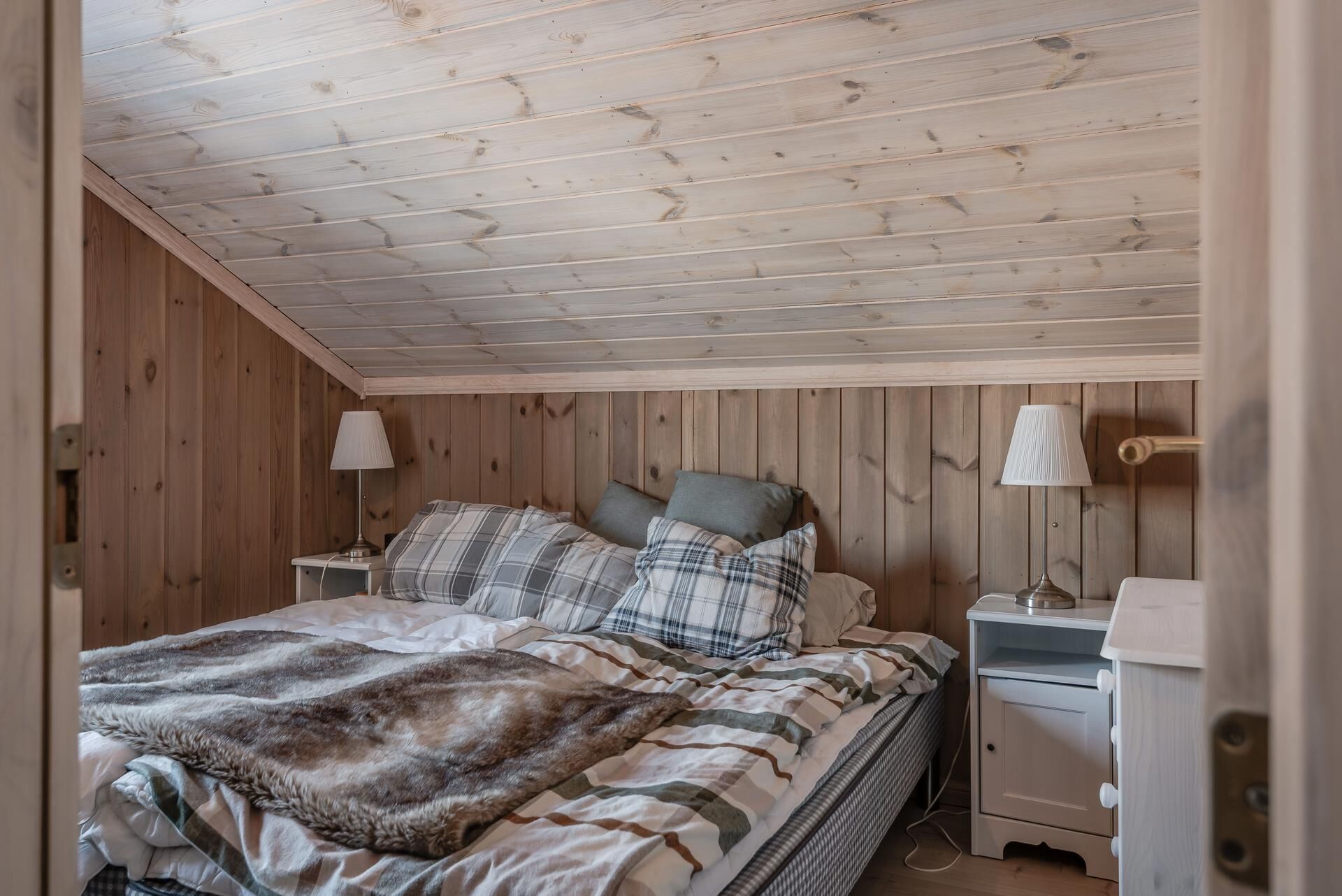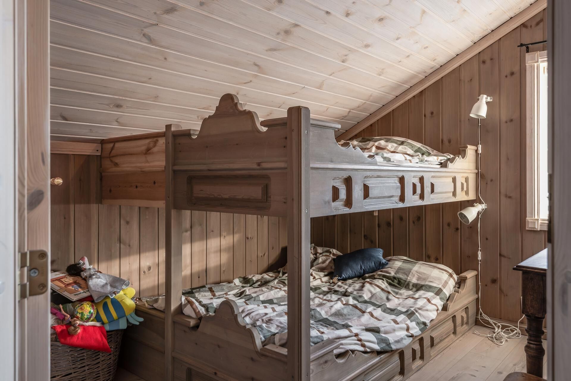 Sovrum På loftet finns fyra sovrum; två med en dubbelsäng per rum, och två med en familjesäng per rum. I familjesängarna finns plats för tre personer.