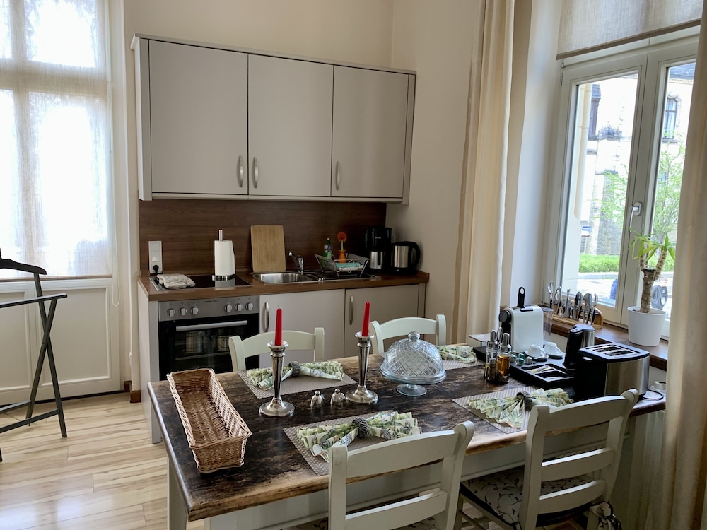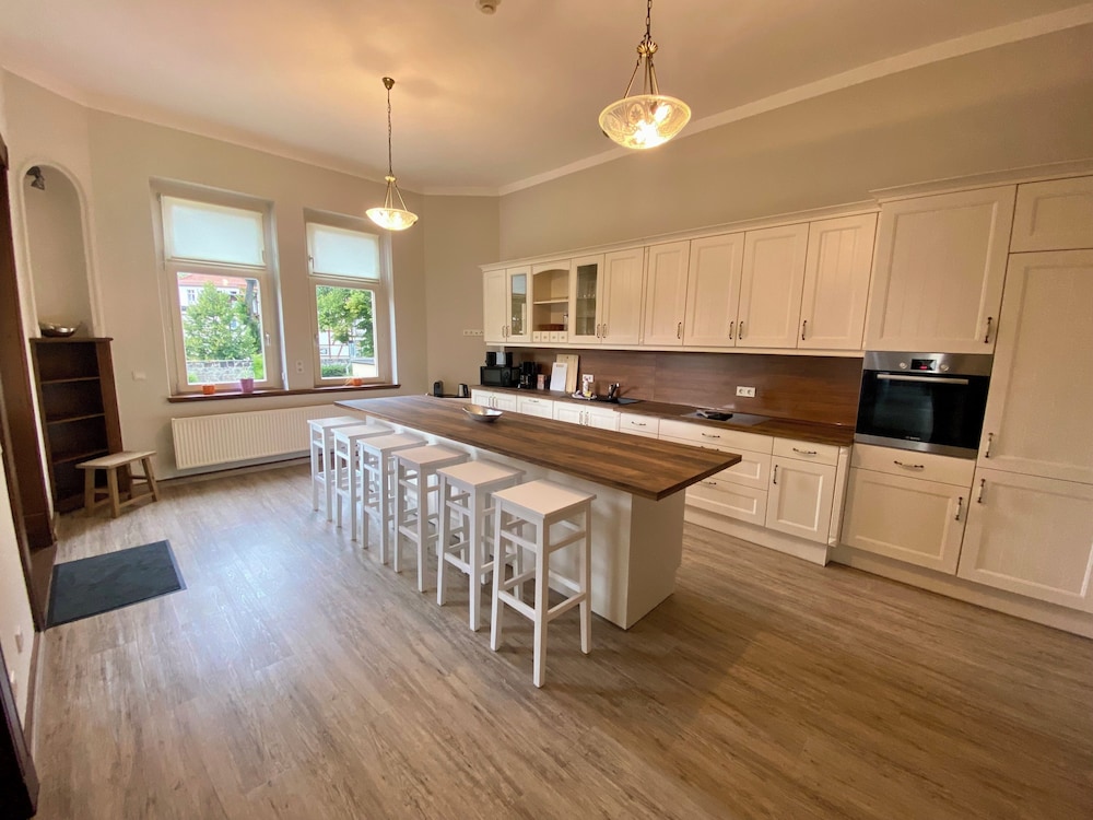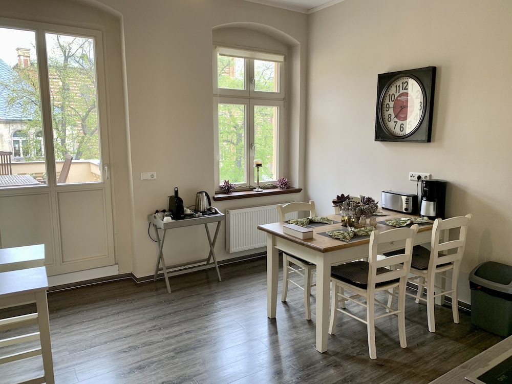 W czasie pobytu w obiekcie Villa le Palais znajdziesz się w samym centrum miasta takiego jak Quedlinburg, kilka kroków od atrakcji takiej jak Stare miasto w Quedlinburgu i pięć minut piechotą od miejsca takiego jak Kościół św. Mikołaja. Apartament (z atmosferą przyjazną rodzinom) znajduje się 1,8 km od atrakcji takiej jak Zamek Quedlinburg i 2 km od miejsca takiego jak Jarmark Bożonarodzeniowy w Quedlinburgu. Poczuj się jak w domu w 12 oryginalnie udekorowane pokojach, których wyposażenie to kuchnie (pełnowymiarowa lodówka i zamrażarka i piekarniki). Bezpłatny bezprzewodowy dostęp do internetu zapewni łączność ze światem, a 50-cal. telewizor płaskoekranowy i telewizja satelitarna — rozrywkę. Udogodnienia obejmują kuchenki mikrofalowe i zestawy do parzenia kawy i herbaty oraz sprzątanie na życzenie. Odległości są podane z dokładnością do 0,1 kilometra.