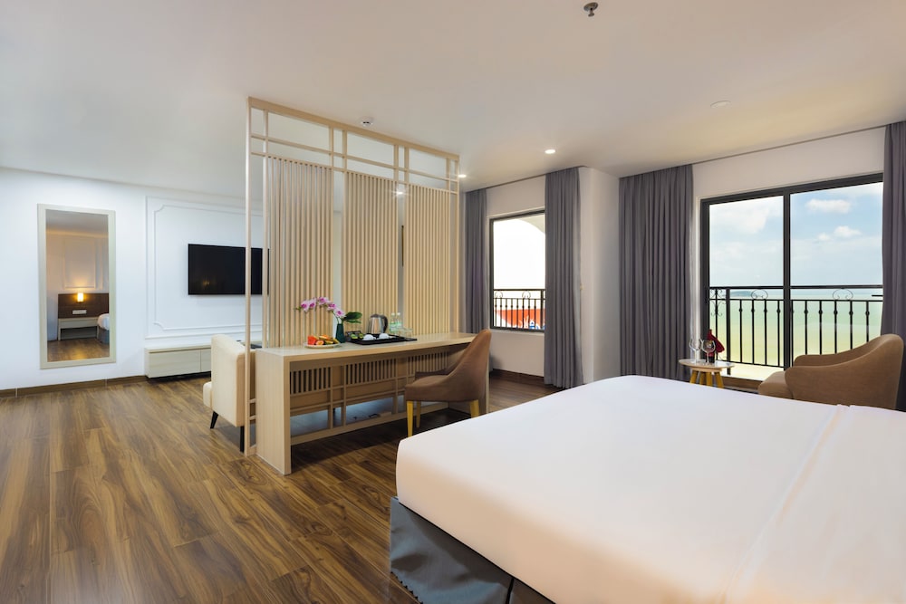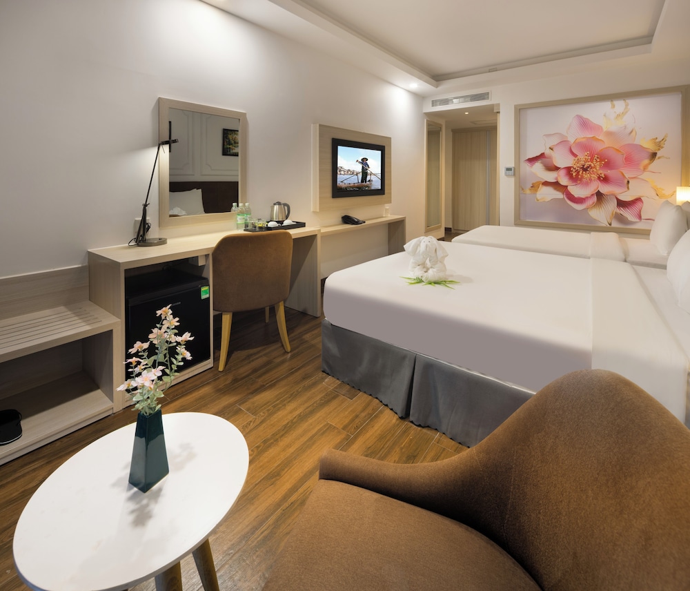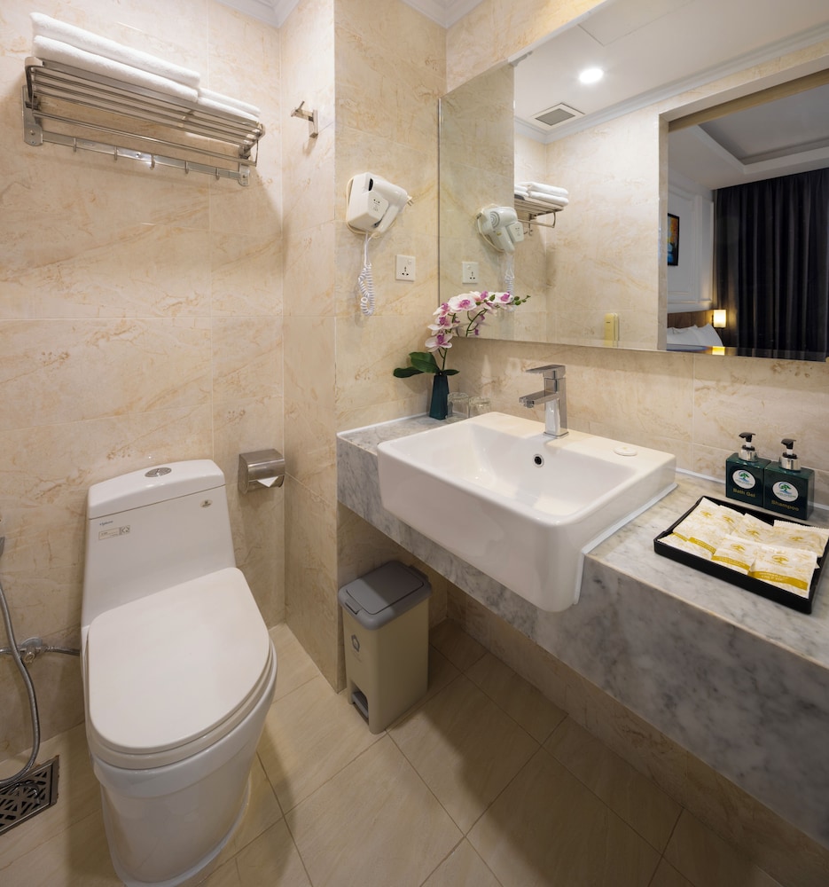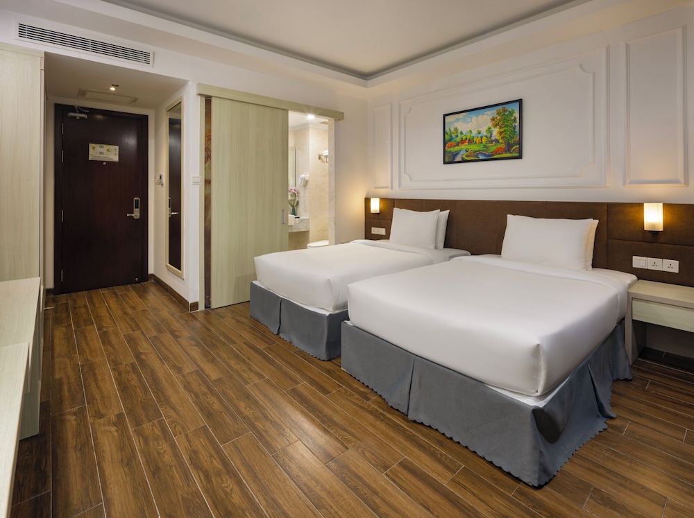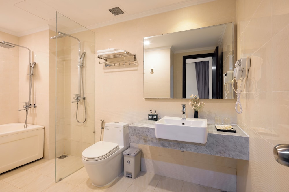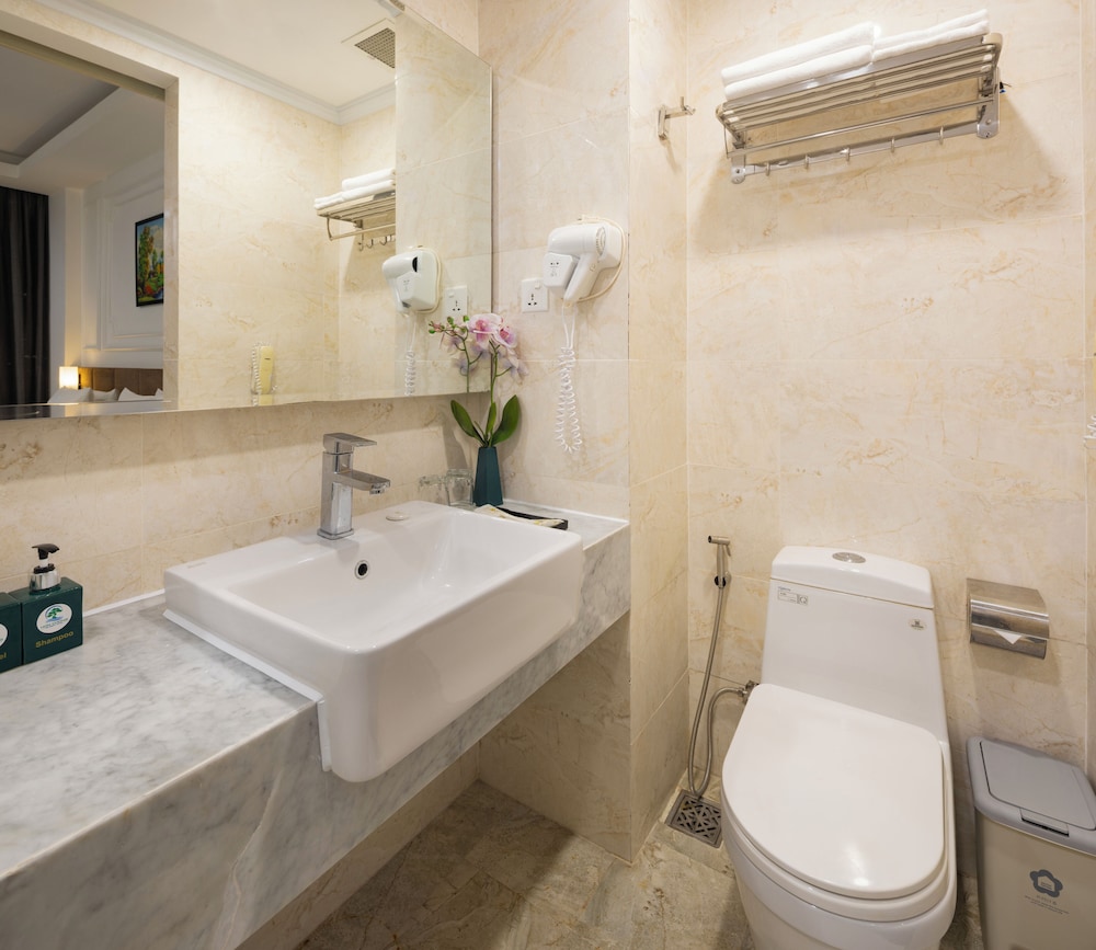 Udogodnienia biznesowe to ekspresowe zameldowanie, ekspresowe wymeldowanie oraz usługi pralni chemicznej. Ten obiekt typu hotel zapewnia udogodnienia konferencyjne takie jak centrum konferencyjne i 2 sale konferencyjne. Płatne udogodnienia to transport z i na lotnisko (całą dobę). Dostępna jest także taka usługa jak bezpłatne parkowanie przez obsługę. Dostępne udogodnienia rekreacyjne to 2 baseny odkryte oraz centrum fitness i karaoke. Ten hotel w stylu śródziemnomorskim oferuje takie udogodnienia jak bezpłatny bezprzewodowy dostęp do internetu, obsługa portierska oraz telewizor w holu. W obiekcie takim jak hotel do dyspozycji gości są restauracja, a także całodobowa obsługa pokojowa. Codziennie hotel oferuje bezpłatne przyjęcie. Chcesz się zrelaksować? Wypocznij w jednym z naszych 2 basenów z barem. Śniadanie w formie bufetu jest podawane codziennie od 6:30 do 9 za opłatą.- Opłata za śniadanie w formie bufetu: ok. 150000 VND za osobę dorosłą i 100000 VND za dziecko
