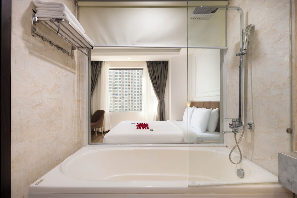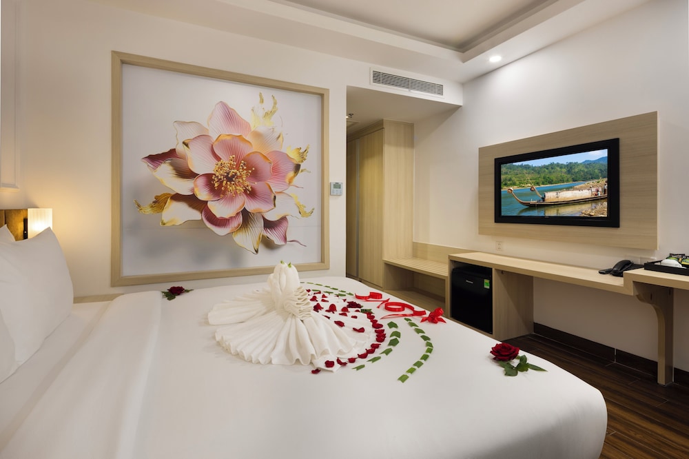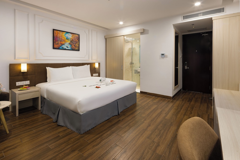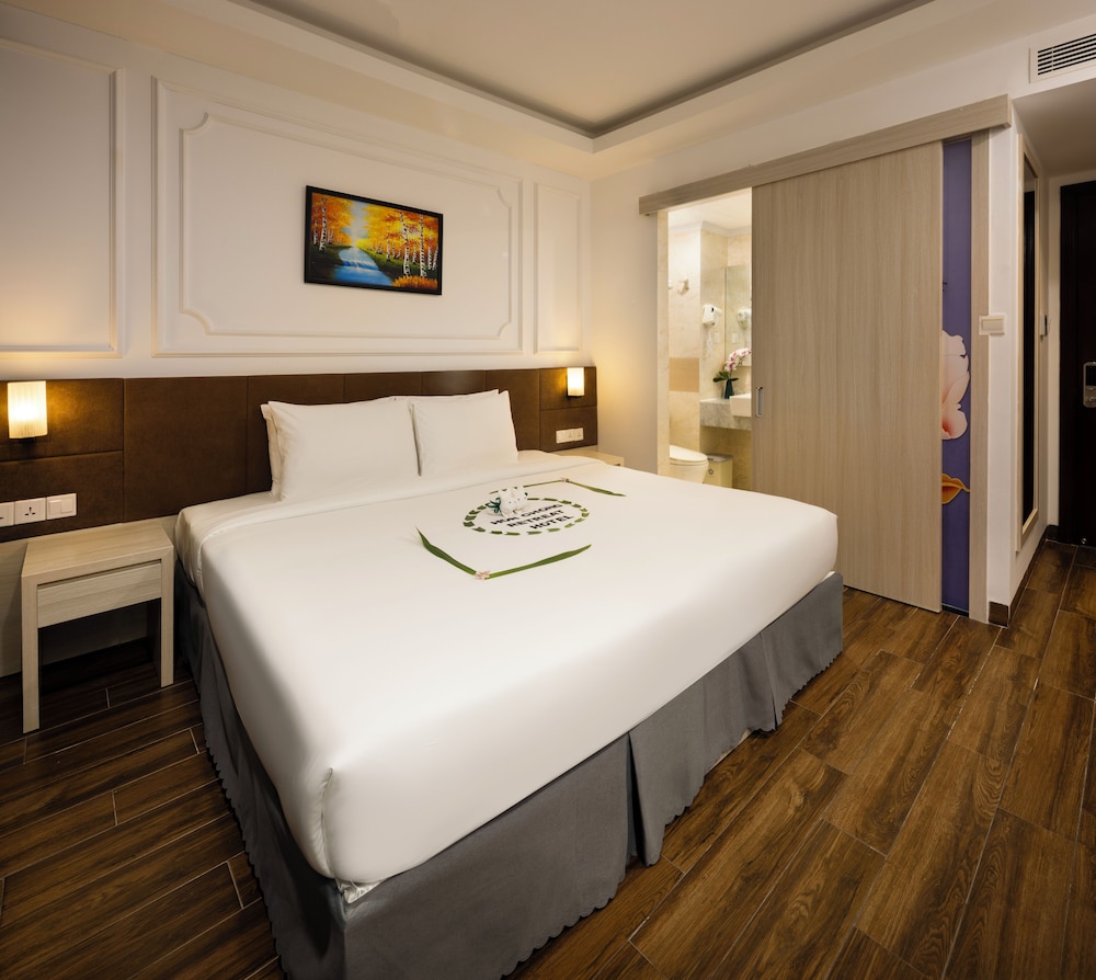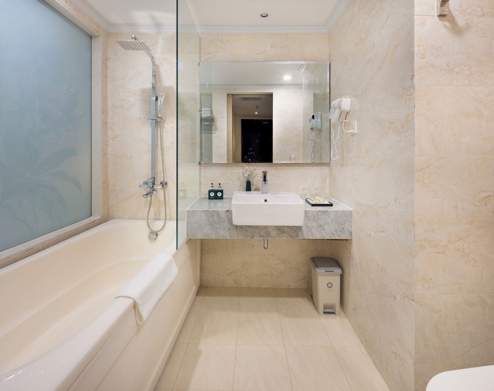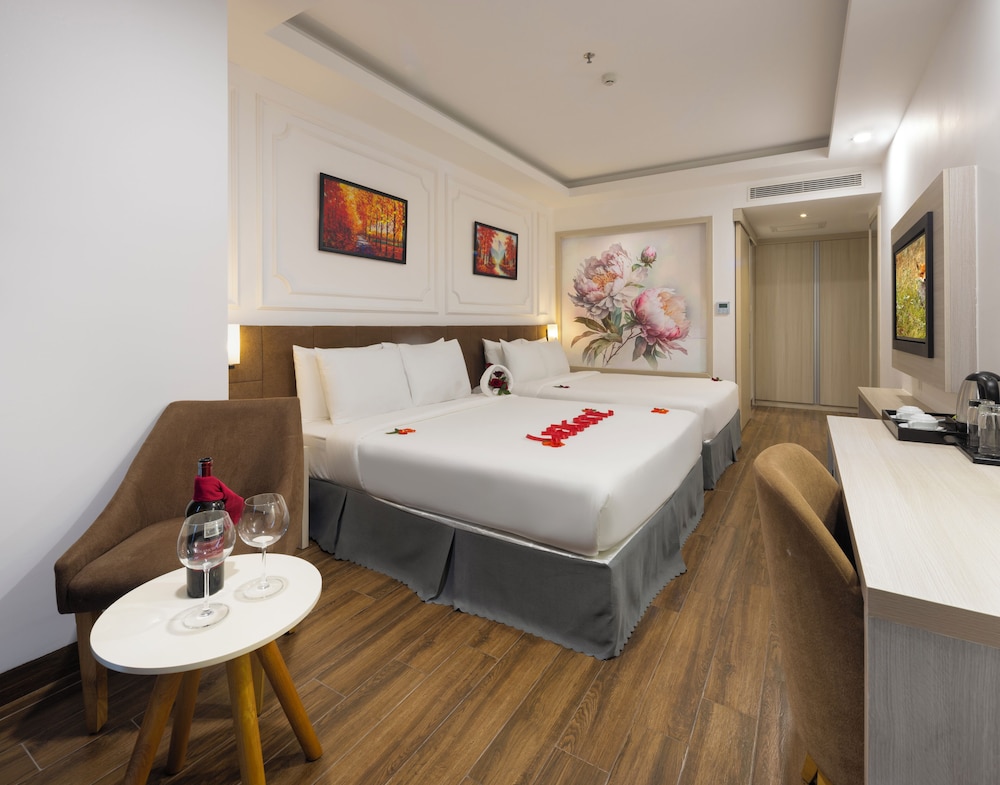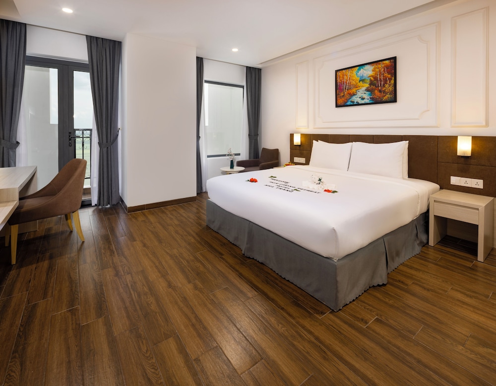 Udogodnienia biznesowe to ekspresowe zameldowanie, ekspresowe wymeldowanie oraz usługi pralni chemicznej. Ten obiekt typu hotel zapewnia udogodnienia konferencyjne takie jak centrum konferencyjne i 2 sale konferencyjne. Płatne udogodnienia to transport z i na lotnisko (całą dobę). Dostępna jest także taka usługa jak bezpłatne parkowanie przez obsługę. Dostępne udogodnienia rekreacyjne to 2 baseny odkryte oraz centrum fitness i karaoke. Ten hotel w stylu śródziemnomorskim oferuje takie udogodnienia jak bezpłatny bezprzewodowy dostęp do internetu, obsługa portierska oraz telewizor w holu. W obiekcie takim jak hotel do dyspozycji gości są restauracja, a także całodobowa obsługa pokojowa. Codziennie hotel oferuje bezpłatne przyjęcie. Chcesz się zrelaksować? Wypocznij w jednym z naszych 2 basenów z barem. Śniadanie w formie bufetu jest podawane codziennie od 6:30 do 9 za opłatą.- Opłata za śniadanie w formie bufetu: ok. 150000 VND za osobę dorosłą i 100000 VND za dziecko