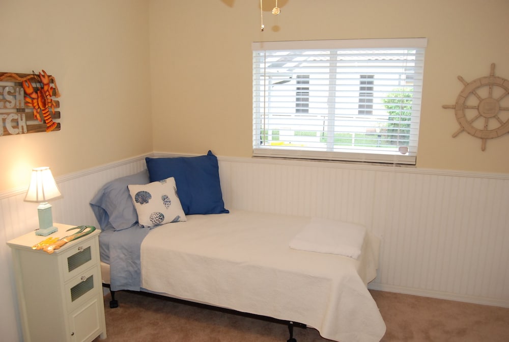 W czasie pobytu w obiekcie takim jak ten dom wakacyjny w mieście Cape Coral (Pelican) zamieszkasz 10 minut samochodem od atrakcji takich jak Rotary Park Environmental Center i Siedziba Veterans Foundation. Domek letniskowy znajduje się 23,9 km od atrakcji takiej jak Key West Express i 32,1 km od miejsca takiego jak Plaża południowa na wyspie Sanibel. Oryginalnie udekorowane domek letniskowy sprawi, że poczujesz się jak w domu. Dostępne wyposażenie to prywatny basen i telewizor LED. Do prywatnego użytku gości jest także lanai. Kuchnia — wyposażenie: pełnowymiarowa lodówka i zamrażarka, piekarnik i płyta kuchenna. Bezpłatny bezprzewodowy dostęp do internetu zapewni łączność ze światem, a telewizja kablowa i stacja dokująca do odtwarzaczy MP3 — rozrywkę. Prywatna łazienka (wanna i prysznic osobno) — do dyspozycji gości są głęboka wanna i suszarka do włosów. Odległości są podane z dokładnością do 0,1 kilometra.