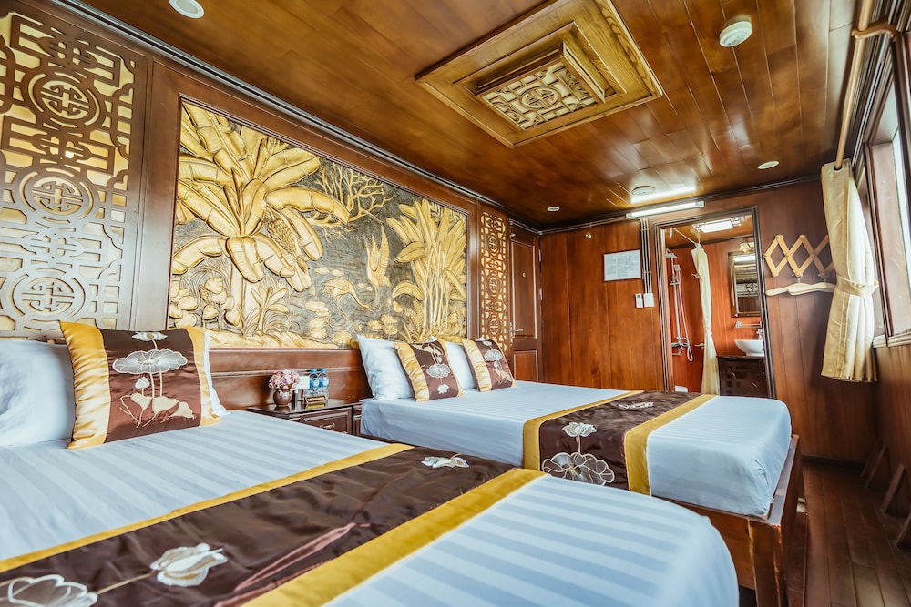 Na przynajmniej część pobytu statek wypływa w rejs z portu Hạ Long.    Poczuj się jak w domu w 11 klimatyzowanych pokojach. Wyposażenie łazienki: bezpłatne przybory toaletowe i suszarki do włosów. Udogodnienia obejmują bezpłatna woda butelkowana oraz sprzątanie codziennie. Odległości są podane z dokładnością do 0,1 kilometra.