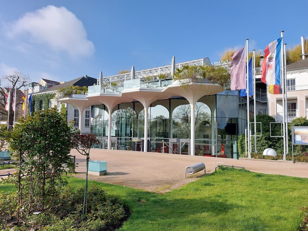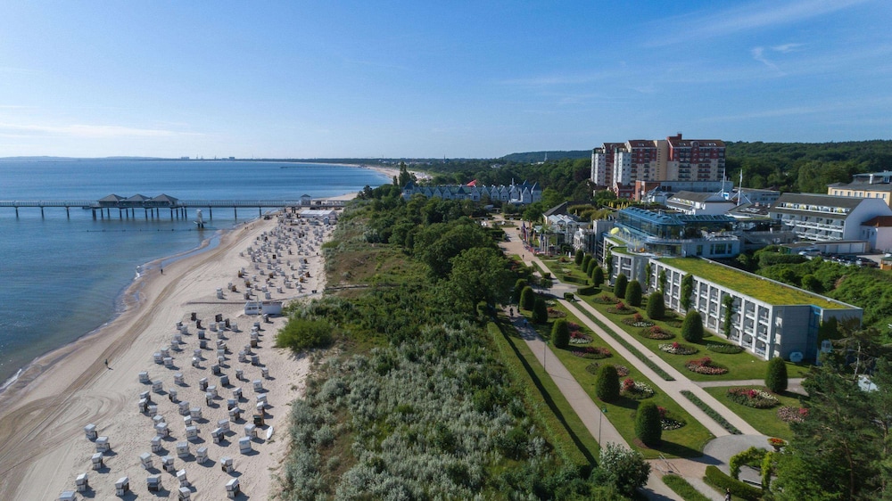 W czasie pobytu w obiekcie takim jak Hotel Kaiserhof Heringsdorf w mieście Heringsdorf znajdziesz się na plaży, bardzo blisko atrakcji takich jak Wyspy Morza Bałtyckiego i Park Przyrody Usedom. Hotel (przy plaży) znajduje się 7 km od atrakcji takiej jak Kąpielisko Morskie Świnoujście i 0,6 km od miejsca takiego jak Las Kuracyjny i Leczniczy. Poczuj się jak w domu w 143 pokojach. Bezpłatny przewodowy i bezprzewodowy dostęp do internetu zapewni łączność ze światem, a telewizja satelitarna — rozrywkę. Wyposażenie łazienki: wanny lub prysznice, bezpłatne przybory toaletowe i suszarki do włosów. Udogodnienia obejmują sejfy i biurka oraz sprzątanie codziennie. Odległości są podane z dokładnością do 0,1 kilometra.