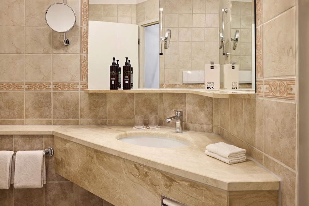 Dorint Marc Aurel Resort Bad Goegging znajduje się w mieście Neustadt an der Donau, na wsi i pięć minut samochodem od atrakcji takiej jak Park Natury Dolina Altmühl i Pozostałości po zamku romańskim Abusina. Hotel (z polem golfowym) znajduje się 7,2 km od atrakcji takiej jak Kunsthaus Abensberg i 7,4 km od miejsca takiego jak Wieża Kuchlbauer. Poczuj się jak w domu w 165 pokojach, których wyposażenie to minibar i telewizor płaskoekranowy. Bezpłatny bezprzewodowy dostęp do internetu zapewni łączność ze światem, a telewizja satelitarna — rozrywkę. Wyposażenie łazienki: wanny lub prysznice, bezpłatne przybory toaletowe i suszarki do włosów. Udogodnienia obejmują telefon oraz sejfy i biurka. Udogodnienia biznesowe to całodobowe centrum biznesowe, bezpłatne czasopisma w holu oraz usługi pralni chemicznej. Ten obiekt typu hotel zapewnia udogodnienia konferencyjne takie jak centrum konferencyjne i 17 sale konferencyjne. Płatne udogodnienia to transport z i na lotnisko oraz odbiór gości z dworca kolejowego. Zrelaksuj się w spa, które oferuje masaż, zabiegi na ciało i zabiegi na twarz. Dostępne udogodnienia rekreacyjne to pole golfowe oraz 2 baseny kryte. Ten hotel w stylu śródziemnomorskim oferuje takie udogodnienia jak bezpłatny bezprzewodowy dostęp do internetu, obsługa portierska oraz sklepy z pamiątkami i czasopismami. Hotel: znajduje się tutaj restauracja Forum, gdzie wydawane są posiłki takie jak obiad i kolacja. Jedzenie i picie serwują również miejsca takie jak kawiarnia i do Twojej dyspozycji pozostaje także obsługa pokojowa (w określonych godzinach). Po całym dniu zrelaksujesz się w naszym barze/salonie klubowym lub barze przy basenie. Śniadanie w formie bufetu jest podawane codziennie od 6:30 do 10:30 za opłatą. Następujące udogodnienia lub usługi będą niedostępne od 9 styczeń 2026 r. do 1 kwiecień 2026 r. (daty mogą ulec zmianie):