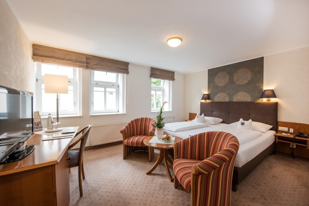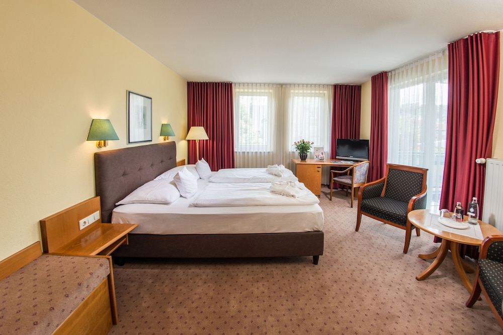 Położony w mieście Eisenach, Göbel's Sophien Hotel znajduje się pięć minut spacerem od atrakcji takich jak Dom Lutra i Kościół św. Jerzego. Ten 4-gwiazdkowy hotel znajduje się 0,6 km od atrakcji takiej jak Karlsplatz i 0,7 km od miejsca takiego jak Nikolaitor. Poczuj się jak w domu w 73 pokojach, których wyposażenie to telewizor płaskoekranowy. Bezpłatny bezprzewodowy dostęp do Internetu zapewni łączność ze światem, a telewizja kablowa — rozrywkę. Prywatna łazienka — wyposażenie: wanny lub prysznice, bezpłatne przybory toaletowe i suszarki do włosów. Udogodnienia obejmują sejfy i biurka oraz sprzątanie codziennie. Odległości są podane z dokładnością do 0,1 kilometra.
