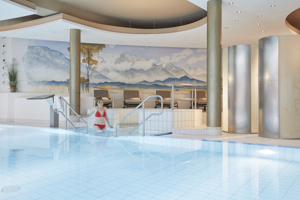 Udogodnienia biznesowe to całodobowe centrum biznesowe, bezpłatne czasopisma w holu oraz usługi pralni chemicznej. Jeżeli planujesz spotkanie w mieście Murnau am Staffelsee, hotel oferuje centrum konferencyjne oraz sale konferencyjne o łącznej powierzchni 22 m kw. (237 stopy kwadratowe). Płatne udogodnienia to transport z i na lotnisko (całą dobę). Dostępna jest także taka usługa jak samodzielne parkowanie (za opłatą). Zrelaksuj się w spa, które oferuje masaż, zabiegi na ciało i zabiegi na twarz. Dostępne udogodnienia rekreacyjne to 2 baseny odkryte, sauna oraz centrum fitness. Ten hotel oferuje również udogodnienia takie jak bezpłatny bezprzewodowy dostęp do internetu, obsługa portierska i usługi niani (za dopłatą). W obiekcie takim jak hotel do dyspozycji gości są restauracja, a także całodobowa obsługa pokojowa. Ożywcze napoje znajdziesz w jednym z lokali: bar/salon klubowy. Hotel oferuje bezpłatne śniadanie w formie bufetu codziennie od 6 do 10:30. Hotelstars Union dokonuje oficjalnej klasyfikacji struktur noclegowych w tym kraju (Niemcy). Klasyfikacja tego obiektu to 5 stars.W obiekcie należy dokonać następujących opłat. Opłaty mogą obejmować obowiązujące podatki: