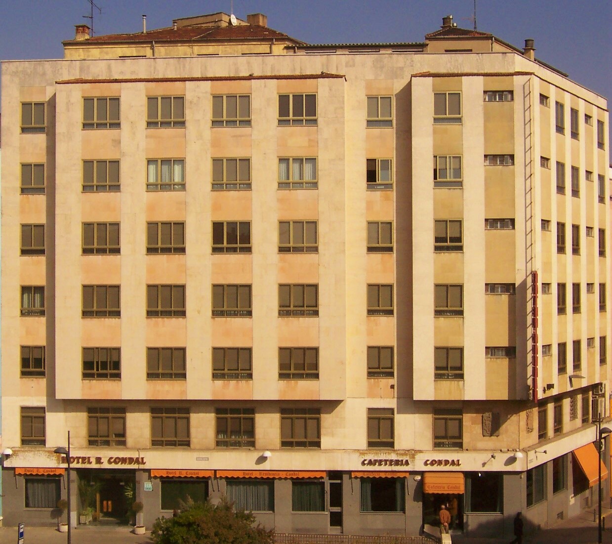 Hotel pooony jest w centrum Salamanki, trzy minuty spacerem od synnego Plaza Mayor i dzielnicy handlowej. W pobliu znajduje si parking publiczny. Proste, ale dobrze wyposaone pokoje oferuj azienk. Kady klimatyzowany pokój wyposaony jest w telewizor, telefon i bezpatne Wi-Fi. Hotel Condal dysponuje kawiarni-barem z bezpatnym dostpem do Wi-Fi. W zasigu rki znajduj si liczne bary, restauracje i teatry.