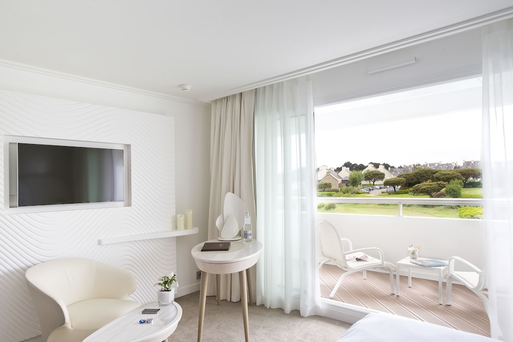 Położony w mieście Arzon, Miramar La Cigale Hôtel Thalasso & Spa znajduje się nad oceanem, pięć minut samochodem od atrakcji takich jak Port Crouesty i Port Navalo.  Hotel (przy plaży) znajduje się 2,5 km od atrakcji takiej jak Golf de Rhuys-Kerver i 14,7 km od miejsca takiego jak Zamek Suscinio. Poczuj się jak w domu w 113 klimatyzowanych pokojach, których wyposażenie to telewizor płaskoekranowy. Wyposażenie łóżek to piankowy z pamięcią kształtu. Do pokoju przylega umeblowany balkon. Bezpłatny bezprzewodowy dostęp do internetu zapewni łączność ze światem, a telewizja satelitarna — rozrywkę. Prywatna łazienka — wyposażenie: wanny lub prysznice, suszarki do włosów i szlafroki. Odległości są podane z dokładnością do 0,1 kilometra.