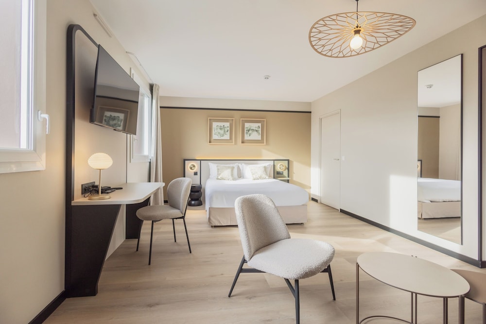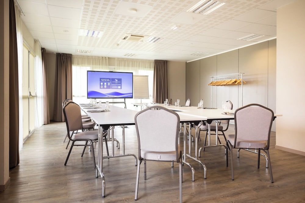 Udogodnienia biznesowe to recepcja całodobowa, przechowalnia bagażu oraz winda. Jeżeli planujesz spotkanie w mieście Saint-Onen-la-Chapelle, hotel oferuje pomieszczenia konferencyjne oraz sala konferencyjna o łącznej powierzchni 100 m kw. (1076 stopy kwadratowe). Udogodnienia na miejscu to bezpłatne parkowanie samodzielne. Do pokoju przylegają taras i ogród, z których roztacza się piękny widok. Dostępne są również takie udogodnienia, jak bezpłatny bezprzewodowy dostęp do internetu. Ten hotel oferuje również udogodnienia takie jak telewizor w holu, sala bankietowa i przechowalnia rowerów. Twój apetyt zaspokoi L Adresse, restauracja, która specjalizuje się w kuchni takiej jak kuchnia francuska i której podawane są pyszne obiad i kolacja. Możesz też zostać w pokoju i skorzystać z obsługi pokojowej w określonych godzinach. Ożywcze napoje znajdziesz w jednym z lokali: bar/salon klubowy. Śniadanie w formie bufetu jest podawane codziennie od 6:30 do 9:30 za opłatą. Liczba gwiazdek tego obiektu przyznana została przez Francuską Agencję Rozwoju Turystyki — ATOUT France.W obiekcie należy dokonać następujących opłat. Opłaty mogą obejmować obowiązujące podatki:
