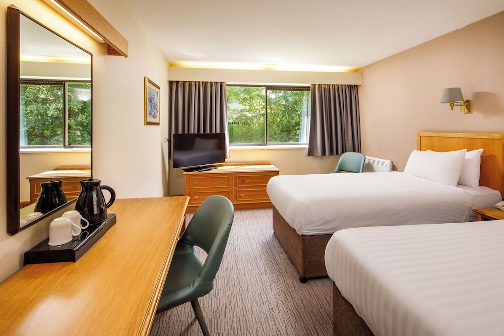 Położony w mieście Livingston, Mercure Livingston Hotel znajduje się w dzielnicy handlowej, 10 minut samochodem od atrakcji takich jak Almond Valley Heritage Centre i Zoo Five Sisters. Hotel znajduje się 11,5 km od atrakcji takiej jak Edinburgh International Climbing Arena Ratho i 12,8 km od miejsca takiego jak Uniwersytet Heriot-Watt. Poczuj się jak w domu w 120 pokojach, których wyposażenie to telewizor LED. Bezpłatny bezprzewodowy dostęp do internetu zapewni łączność ze światem, a telewizja cyfrowa — rozrywkę. Prywatna łazienka — wyposażenie: głębokie wanny i bezpłatne przybory toaletowe. Udogodnienia obejmują telefon oraz biurka i czajnik elektryczny. Udogodnienia biznesowe to ekspresowe wymeldowanie, usługi pralni chemicznej oraz recepcja całodobowa. Udogodnienia na miejscu to bezpłatne parkowanie samodzielne. Dostępne udogodnienia to bezpłatny bezprzewodowy dostęp do internetu, kominek w holu oraz sala balowa. Ten hotel oferuje również takie udogodnienia jak automat i parking rowerowy. Twój apetyt zaspokoi restauracja The Brasserie, restauracja, w której znajduje się doskonale zaopatrzony bar/salon klubowy. Możesz też zostać w pokoju i skorzystać z całodobowej obsługi pokojowej. Śniadania pełne są podawane w dni powszednie od 6:30 do 9:30, a w weekendy od 7 do 10 za opłatą. Ten hotel otrzymał oficjalną ocenę gwiazdkową organizacji VisitScotland, będącej Narodową Organizacją Turystyczną Szkocji.