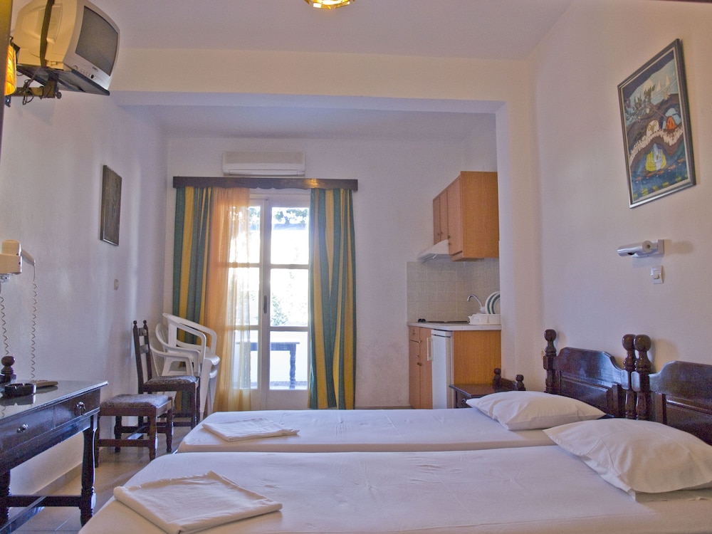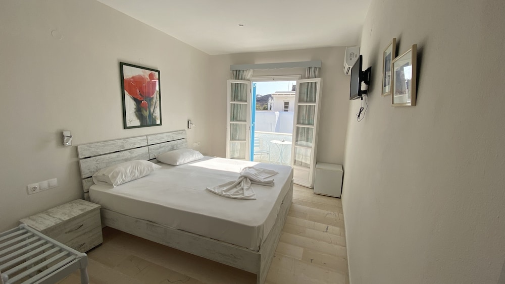 W czasie pobytu w obiekcie takim jak Mare Monte w mieście Ios znajdziesz się na plaży, jedynie 2 minut piechotą od atrakcji takiej jak Plaża Jalos i 8 minut piechotą od miejsca takiego jak Port promowy w Ios. Hotel (przy plaży) znajduje się 1 km od atrakcji takiej jak Plaża Tzamaria i 1,5 km od miejsca takiego jak Skarkos. Poczuj się jak w domu w 30 pokojach, których wyposażenie to lodówka. Do pokoju przylega balkon. Bezpłatny bezprzewodowy dostęp do internetu zapewni łączność ze światem, a telewizja kablowa — rozrywkę. Wyposażenie łazienki: prysznic, bezpłatne przybory toaletowe i suszarki do włosów. Odległości są podane z dokładnością do 0,1 kilometra.