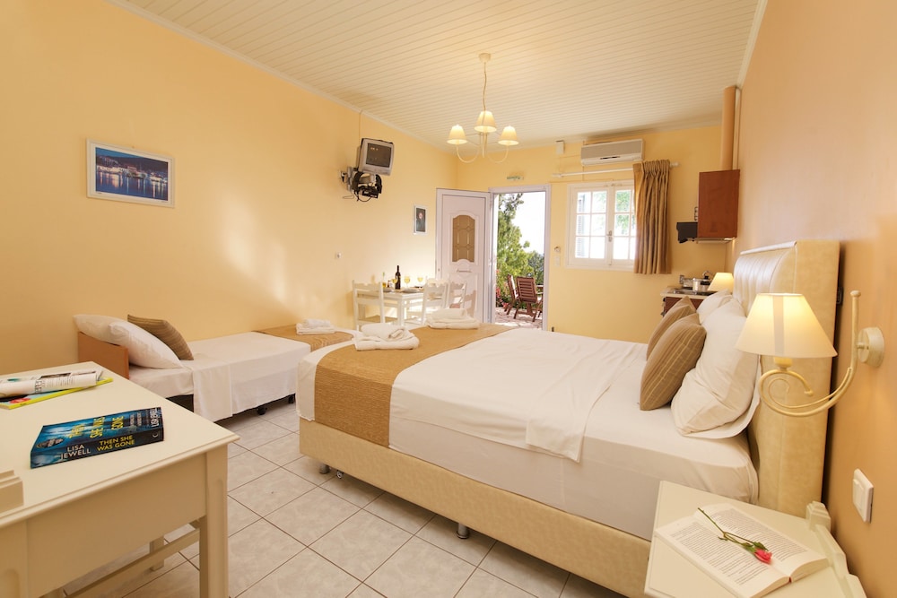 W czasie pobytu w obiekcie takim jak Panoramic Sunset w mieście Kefalinia, znajdziesz się 10,7 km od miejsca takiego jak Plaża Foki i 11,9 km od atrakcji takiej jak Port w Fiskardo. Dom gościnny znajduje się 12,8 km od atrakcji takiej jak Plaża Myrtos i 44,1 km od miejsca takiego jak Port Itaki. Poczuj się jak w domu w 9 klimatyzowanych pokojach, których wyposażenie to lodówka. Bezpłatny bezprzewodowy dostęp do internetu zapewni łączność ze światem. Wyposażenie łazienki: prysznic i bezpłatne przybory toaletowe. Udogodnienia obejmują sejfy na laptopa i żelazka i deski do prasowania oraz sprzątanie na życzenie. Udogodnienia biznesowe to personel wielojęzyczny, przechowalnia bagażu oraz pralnia. Płatne udogodnienia to transport z i na lotnisko. Dostępna jest także taka usługa jak bezpłatne parkowanie samodzielne. Do pokoju przylegają taras i ogród, z których roztacza się piękny widok. Dostępne są również takie udogodnienia rekreacyjne, jak sezonowy basen odkryty. Ten dom gościnny oferuje również udogodnienia takie jak bezpłatny bezprzewodowy dostęp do internetu, obsługa portierska i teren piknikowy. Za opłatą do dyspozycji gości jest wahadłowy autobus kursujący do pobliskich atrakcji. W obiekcie takim jak dom gościnny do dyspozycji gości jest obsługa pokojowa.