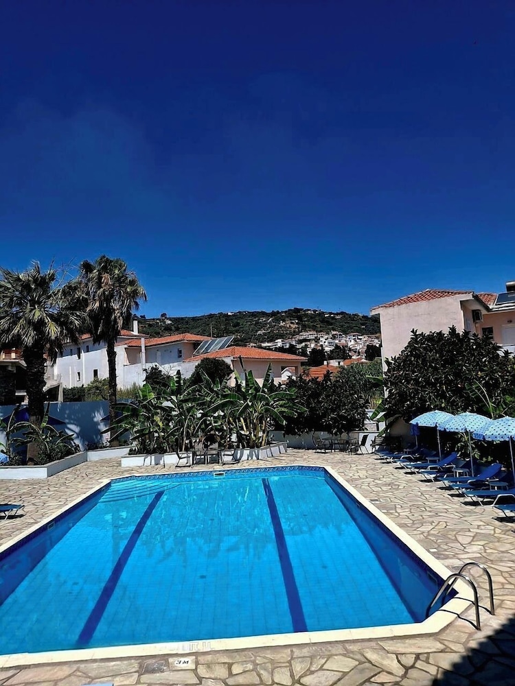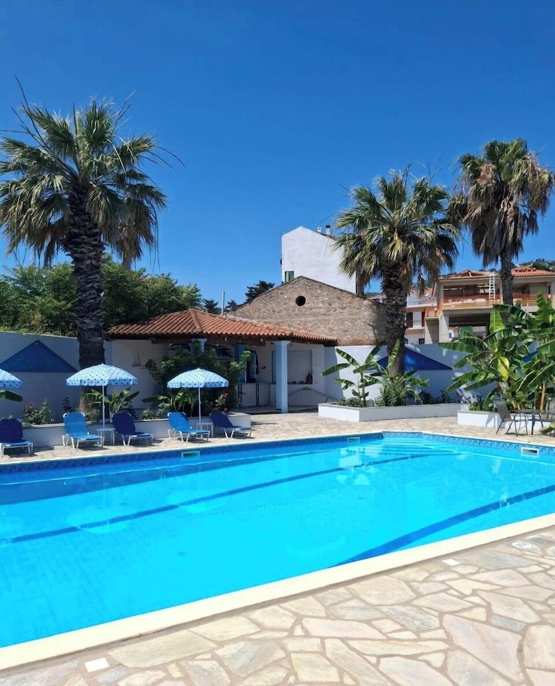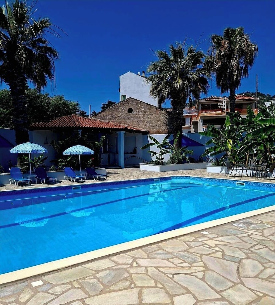 Najbliższe lotnisko to Skiathos (JSI-Krajowy port lotniczy Skiathos) — 42,3 km