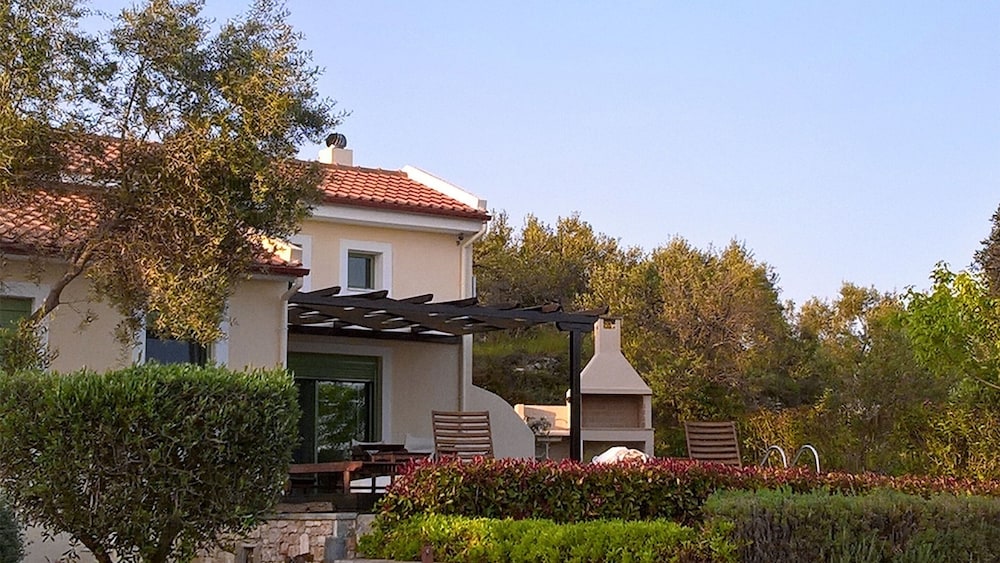 Najlepsze lotnisko by dotrzeć do tego hotelu-willi to Skiathos (JSI-Krajowy port lotniczy Skiathos) — 54,6 km