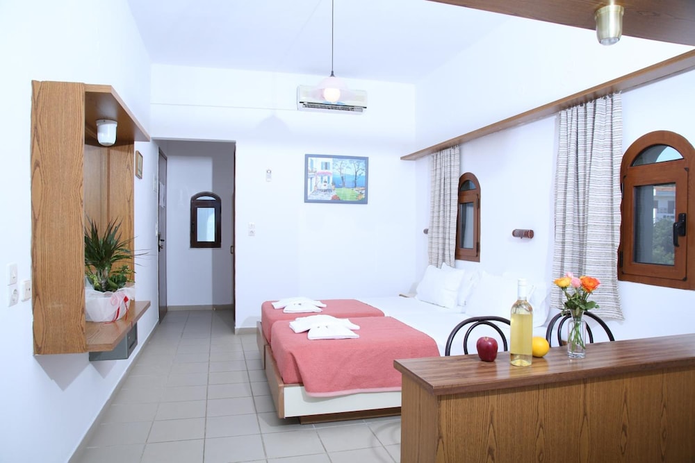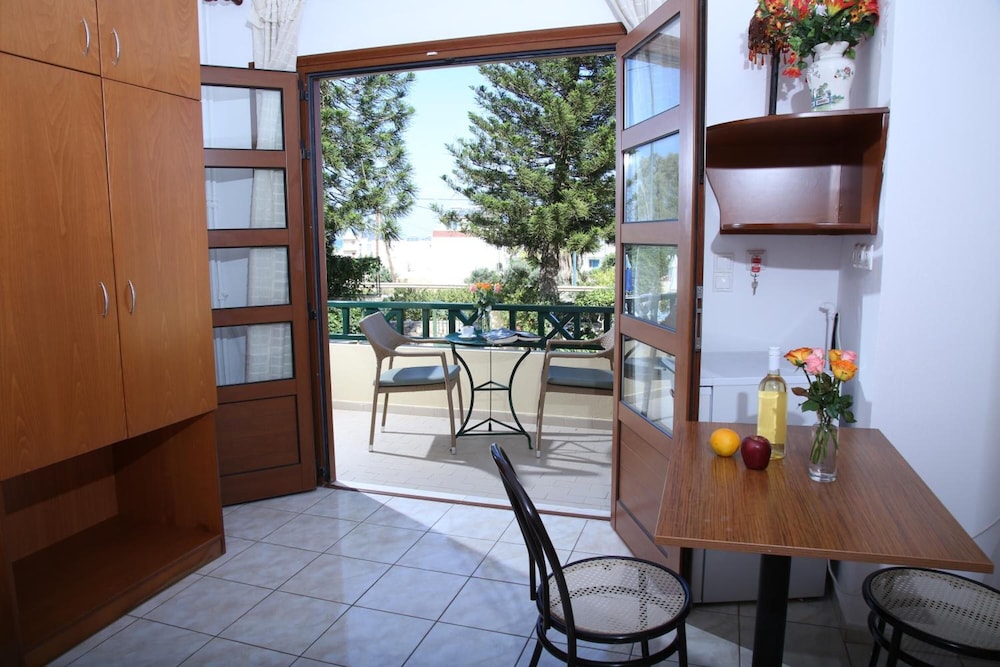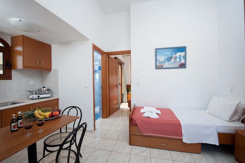 W czasie pobytu w obiekcie takim jak Kiriakos Apartments w mieście Hersonissos zamieszkasz niedaleko plaży, pięć minut samochodem od atrakcji takich jak Plaża w Stalidzie i Park wodny Starbeach. Hotel znajduje się 5,1 km od atrakcji takiej jak Port w Hersonissos i 3,1 km od miejsca takiego jak Lychnostatis. Poczuj się jak w domu w 12 klimatyzowanych pokojach, których wyposażenie to aneksy kuchenne. Do pokoju przylega umeblowany balkon lub patio. Bezpłatny bezprzewodowy dostęp do internetu zapewni łączność ze światem. Udogodnienia obejmują sejfy i lodówki oraz sprzątanie codziennie. Udogodnienia biznesowe to przechowalnia bagażu i sejf w recepcji. Udogodnienia na miejscu to bezpłatne parkowanie samodzielne. Do pokoju przylegają taras i ogród, z których roztacza się piękny widok. Dostępne są również takie udogodnienia rekreacyjne, jak basen odkryty. Ten hotel oferuje również takie udogodnienia jak bezpłatny bezprzewodowy dostęp do internetu i grill. Hotel zaprasza do skorzystania z takich udogodnień jak kawiarnia i bar zakąskowy/delikatesy. Po całym dniu zrelaksujesz się w naszym barze/salonie klubowym lub barze przy basenie. Za niewielką opłatą jest podawane śniadanie na zamówienie. To miejsce jest nieczynne przez listopadzie, grudniu, styczniu, lutym, marcu i kwietniu.