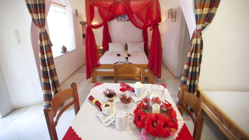 W czasie pobytu w obiekcie takim jak Something Else w mieście Naksos zamieszkasz niedaleko plaży, pięć minut samochodem od atrakcji takich jak Plaża Agios Prokopios i Plaża Plaka. Dom gościnny znajduje się 7,2 km od atrakcji takiej jak Port w Naksos i 39,2 km od miejsca takiego jak Port w Parikii. Poczuj się jak w domu w 14 klimatyzowanych pokojach, których wyposażenie to lodówka. Do pokoju przylega balkon lub patio. Bezpłatny bezprzewodowy dostęp do internetu zapewni łączność ze światem, a telewizja satelitarna — rozrywkę. Wyposażenie łazienki: wanny lub prysznice i suszarki do włosów. Odległości są podane z dokładnością do 0,1 kilometra.