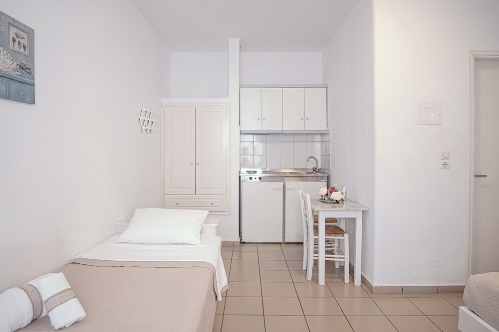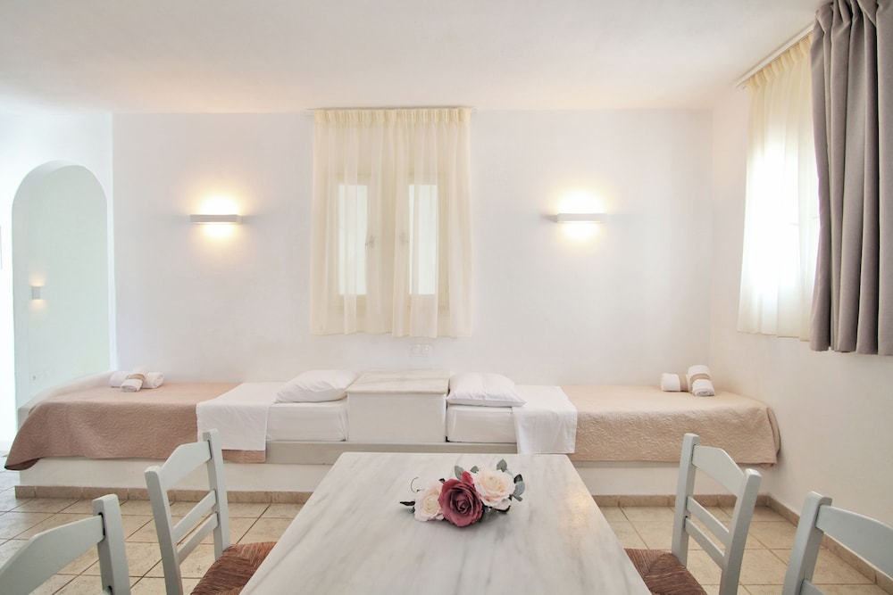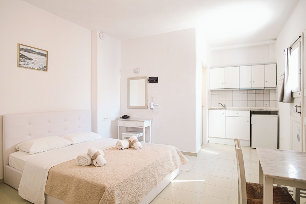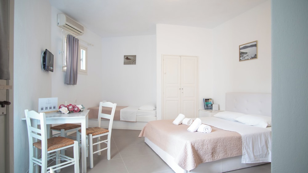 W czasie pobytu w obiekcie takim jak Kritikakis Village Hotel w mieście Ios znajdziesz się nad morzem, jedynie 3 minut piechotą od atrakcji takiej jak Plaża Jalos i 5 minut piechotą od miejsca takiego jak Port promowy w Ios. Hotel znajduje się 1,6 km od atrakcji takiej jak Plaża Tzamaria i 2,1 km od miejsca takiego jak Plaża Koumpara. Poczuj się jak w domu w 45 klimatyzowanych pokojach, których wyposażenie to lodówka i telewizor płaskoekranowy. Bezpłatny bezprzewodowy dostęp do internetu zapewni łączność ze światem, a telewizja satelitarna — rozrywkę. Prywatna łazienka — wyposażenie: bezpłatne przybory toaletowe i suszarki do włosów. Udogodnienia obejmują telefon i masaż w pokoju oraz sprzątanie codziennie. Odległości są podane z dokładnością do 0,1 kilometra.