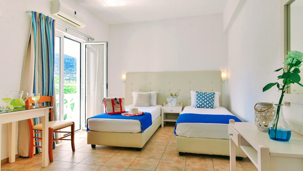 W czasie pobytu w obiekcie takim jak Ibiscus Hotel Malia w mieście Hersonissos zamieszkasz niedaleko plaży, 3 minut samochodem od atrakcji takiej jak Plaża w Stalidzie i 6 minut od miejsca takiego jak Park wodny Starbeach. Hotel znajduje się 8,3 km od atrakcji takiej jak Port w Hersonissos i 1,4 km od miejsca takiego jak Plaża Malia. Poczuj się jak w domu w 26 klimatyzowanych pokojach, których wyposażenie to aneksy kuchenne (lodówka i płyta kuchenna). Do pokoju przylega balkon lub patio. Udogodnienia obejmują sejfy i biurka oraz sprzątanie codziennie. Recepcja jest czynna w określonych godzinach. Udogodnienia na miejscu to bezpłatne parkowanie samodzielne. Do pokoju przylegają taras i ogród, z których roztacza się piękny widok. Dostępne są również takie udogodnienia rekreacyjne, jak sezonowy basen odkryty. W obiekcie takim jak hotel do dyspozycji gości pozostają restauracja, a także kawiarnia. Ożywcze napoje znajdziesz w jednym z lokali: bar/salon klubowy i bar przy basenie. Śniadanie kontynentalne jest podawane codziennie od 8:30 do południa za opłatą.