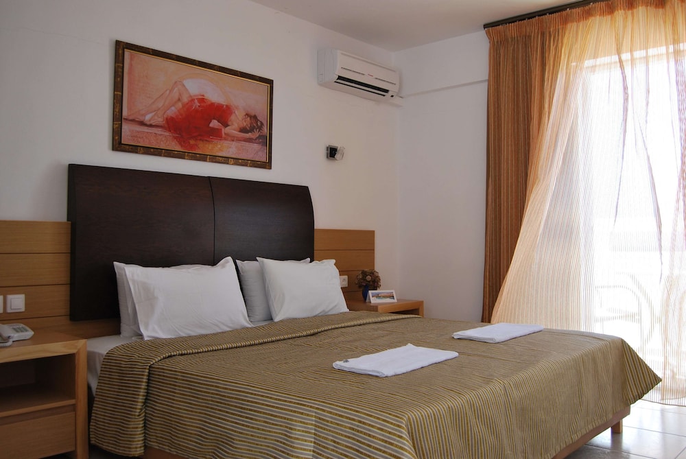 W czasie pobytu w obiekcie takim jak Mediterraneo Hotel - All Inclusive w mieście Hersonissos zamieszkasz przy polu golfowym, pięć minut samochodem od atrakcji takich jak Park wodny Starbeach i Plaża w Stalidzie. Obiekt (all inclusive) znajduje się 3,1 km od atrakcji takiej jak Port w Hersonissos i 1,2 km od miejsca takiego jak Lychnostatis. Poczuj się jak w domu w 305 klimatyzowanych pokojach, których wyposażenie to lodówka i telewizor LED. Bezprzewodowy dostęp do internetu (płatny) zapewni łączność ze światem, a telewizja satelitarna — rozrywkę. Prywatna łazienka — wyposażenie: prysznic, bezpłatne przybory toaletowe i suszarki do włosów. Udogodnienia obejmują telefon oraz czajnik elektryczny i rolety lub zasłony zaciemniające. Udogodnienia biznesowe to ekspresowe zameldowanie, ekspresowe wymeldowanie oraz usługi pralni chemicznej. Płatne udogodnienia to transport z i na lotnisko (całą dobę). Dostępna jest także taka usługa jak bezpłatne parkowanie samodzielne. Zrelaksuj się w spa, które oferuje masaż, zabiegi na ciało i zabiegi na twarz. Dostępne udogodnienia rekreacyjne to 2 baseny odkryte, bezpłatny dostęp do parku wodnego oraz odkryty kort tenisowy. Ten obiekt w stylu śródziemnomorskim oferuje udogodnienia takie jak bezpłatny bezprzewodowy dostęp do internetu, obsługa portierska oraz sala/salon gier. Za opłatą do dyspozycji gości jest wahadłowy autobus kursujący do pobliskich atrakcji. Twój apetyt zaspokoi restauracja MEDITERRANEO MAIN RESTAUR, restauracja, gdzie możesz podziwiać widok na basen. Możesz też skoczyć po przekąski, które oferują miejsca takie jak kawiarnia. Ożywcze napoje znajdziesz w jednym z lokali: bar/salon klubowy i 2 bary przy basenie. Hotel oferuje bezpłatne śniadanie w formie bufetu.