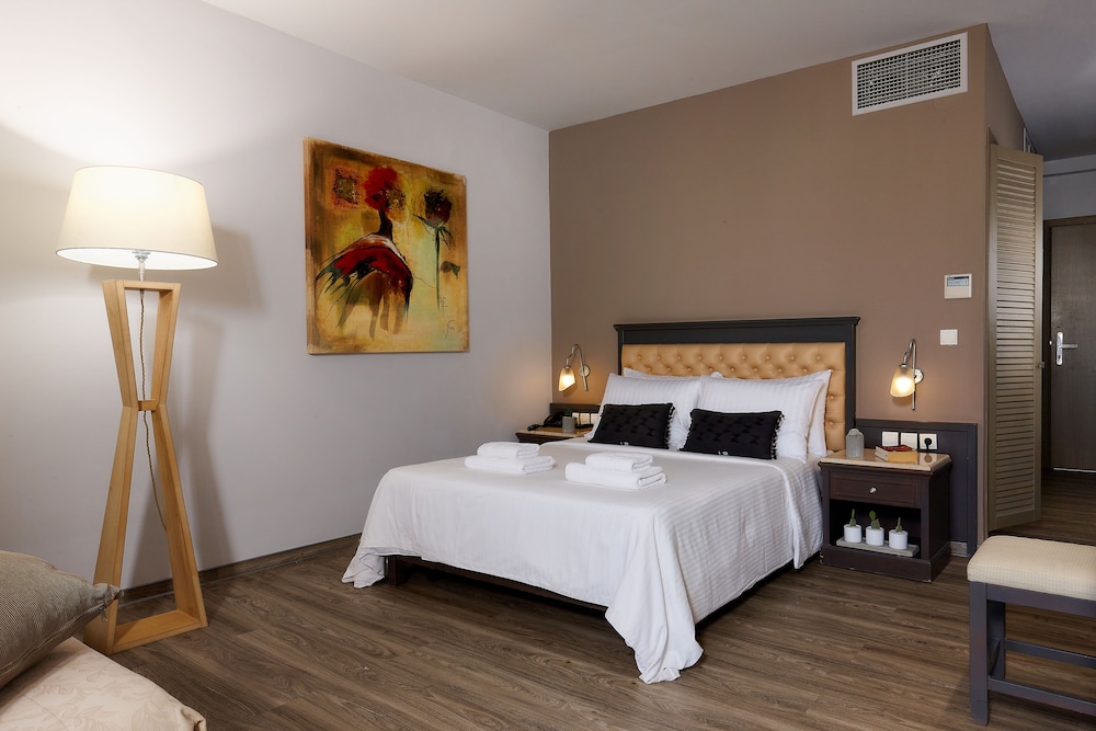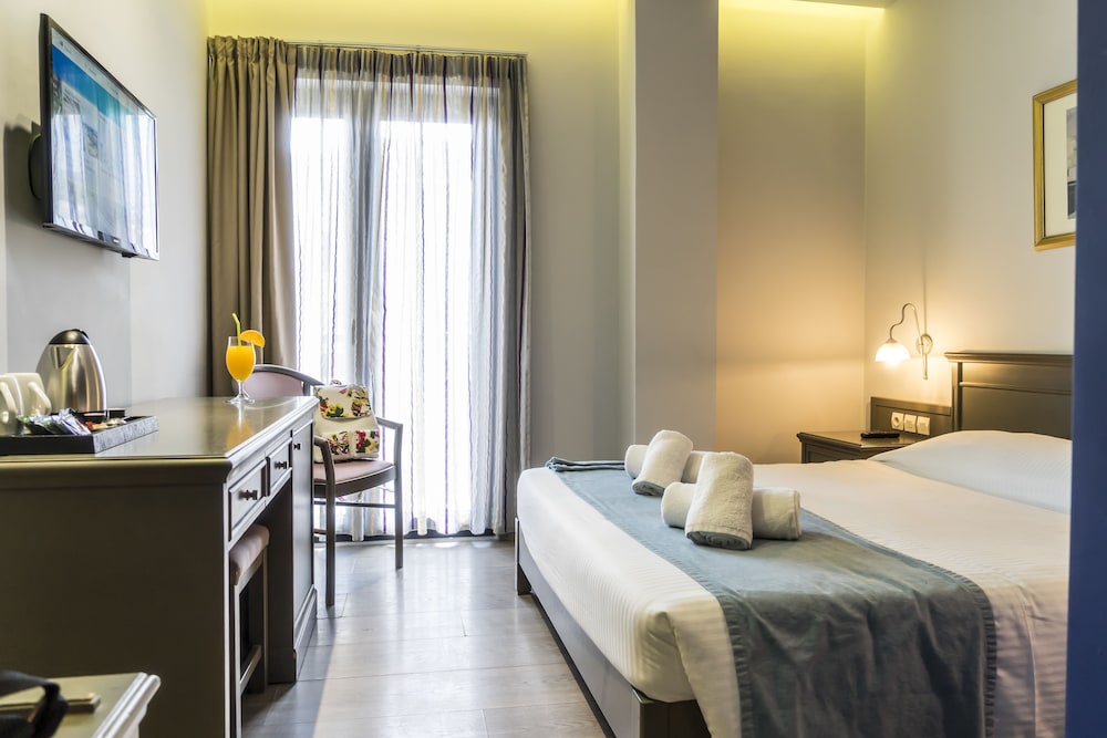 W czasie pobytu w obiekcie takim jak Castello City Hotel w mieście Heraklion zamieszkasz w dzielnicy historycznej, pięć minut samochodem od atrakcji takich jak Port Heraklion i Muzeum Archeologiczne w Heraklionie. Hotel (z atmosferą przyjazną rodzinom) znajduje się 6,3 km od atrakcji takiej jak Pałac Knossos i 0,3 km od miejsca takiego jak Mury weneckie. Poczuj się jak w domu w 68 pokojach, których wyposażenie to lodówka. Wyposażenie łóżek to piankowy z pamięcią kształtu. Bezpłatny bezprzewodowy dostęp do internetu zapewni łączność ze światem, a telewizja cyfrowa — rozrywkę. Prywatna łazienka — wyposażenie: prysznic, bezpłatne przybory toaletowe i suszarki do włosów. Udogodnienia biznesowe to całodobowe centrum biznesowe, ekspresowe zameldowanie oraz ekspresowe wymeldowanie. Jeżeli planujesz spotkanie w mieście Heraklion, hotel oferuje centrum konferencyjne oraz sala konferencyjna o łącznej powierzchni 7 m kw. (70 stopy kwadratowe). Płatne udogodnienia to transport z i na lotnisko (całą dobę). Dostępna jest także taka usługa jak bezpłatne parkowanie samodzielne. Do pokoju przylega taras na dachu, z którego roztacza się piękny widok. Dostępne są również takie udogodnienia, jak bezpłatny bezprzewodowy dostęp do internetu i obsługa portierska. Ten hotel oferuje również udogodnienia takie jak usługi weselne, wspólny pokój dzienny i sala bankietowa. Spróbuj kuchni takiej jak kuchnia grecka, którą serwuje restauracja The 5th floor, restauracja, w której znajduje się doskonale zaopatrzony bar/salon klubowy i gdzie możesz podziwiać widok na ocean. Możesz także zostać w pokoju i skorzystać z obsługi pokojowej w określonych godzinach. Hotel oferuje bezpłatne przyjęcie.