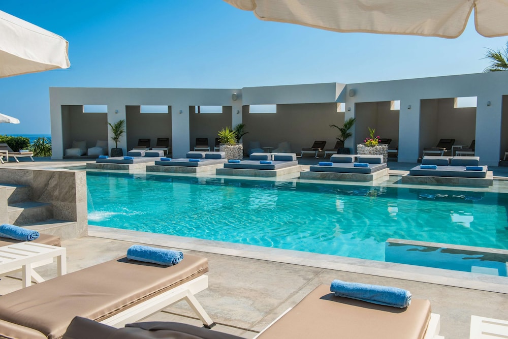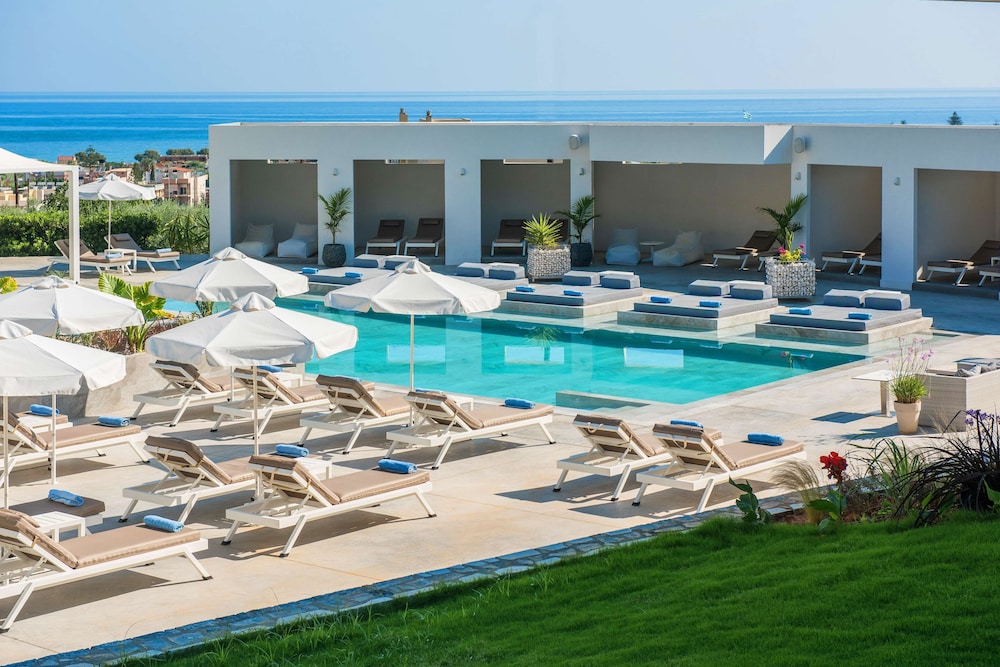 W czasie pobytu w obiekcie takim jak Hotel Matheo Villas & Suites w mieście Hersonissos zamieszkasz przy polu golfowym, 3 minut samochodem od atrakcji takiej jak Plaża w Stalidzie i 7 minut od miejsca takiego jak Park wodny Starbeach. Hotel (z polem golfowym) znajduje się 8,2 km od atrakcji takiej jak Port w Hersonissos i 2,5 km od miejsca takiego jak Plaża Malia. Poczuj się jak w domu w 71 klimatyzowanych pokojach, których wyposażenie to lodówka i telewizor LCD. Do pokoju przylega balkon. Bezpłatny bezprzewodowy dostęp do internetu zapewni łączność ze światem, a telewizja satelitarna — rozrywkę. Wyposażenie łazienki: prysznic i suszarki do włosów. Udogodnienia biznesowe to ekspresowe wymeldowanie, usługi pralni chemicznej oraz recepcja całodobowa. Płatne udogodnienia to transport z i na lotnisko (całą dobę). Dostępna jest także taka usługa jak bezpłatne parkowanie samodzielne. Dostępne udogodnienia rekreacyjne to 3 baseny odkryte oraz siłownia i rowery do wypożyczenia. Ten hotel w stylu śródziemnomorskim oferuje takie udogodnienia jak bezpłatny bezprzewodowy dostęp do internetu, obsługa portierska oraz sala/salon gier. Za opłatą do dyspozycji gości jest wahadłowy autobus kursujący do pobliskich atrakcji. Hotel: znajduje się tutaj restauracja tuż przy basenie, gdzie możesz podziwiać widok na basen i zjeść posiłek na świeżym powietrzu. Możesz też zostać w pokoju i skorzystać z obsługi pokojowej w określonych godzinach. Ożywcze napoje znajdziesz w jednym z lokali: bar/salon klubowy. To miejsce jest nieczynne od 1 listopada do 30 kwietnia.