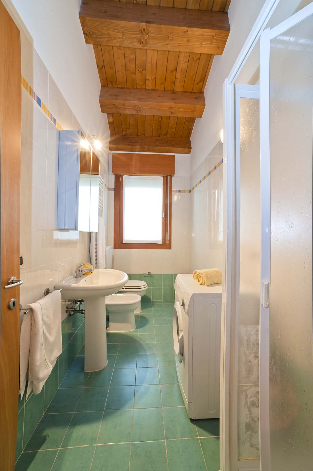 Sprzątanie końcowe w cenie. Sprzątanie częściowe i sprzątanie kuchni we własnym zakresie. Pościel i ręczniki własne lub do wypożyczenia, € 15/os./zestaw. Prąd/gaz/woda € 80/tydzień. Opłata klimatyczna płatna na miejscu. Kaucja € 100.