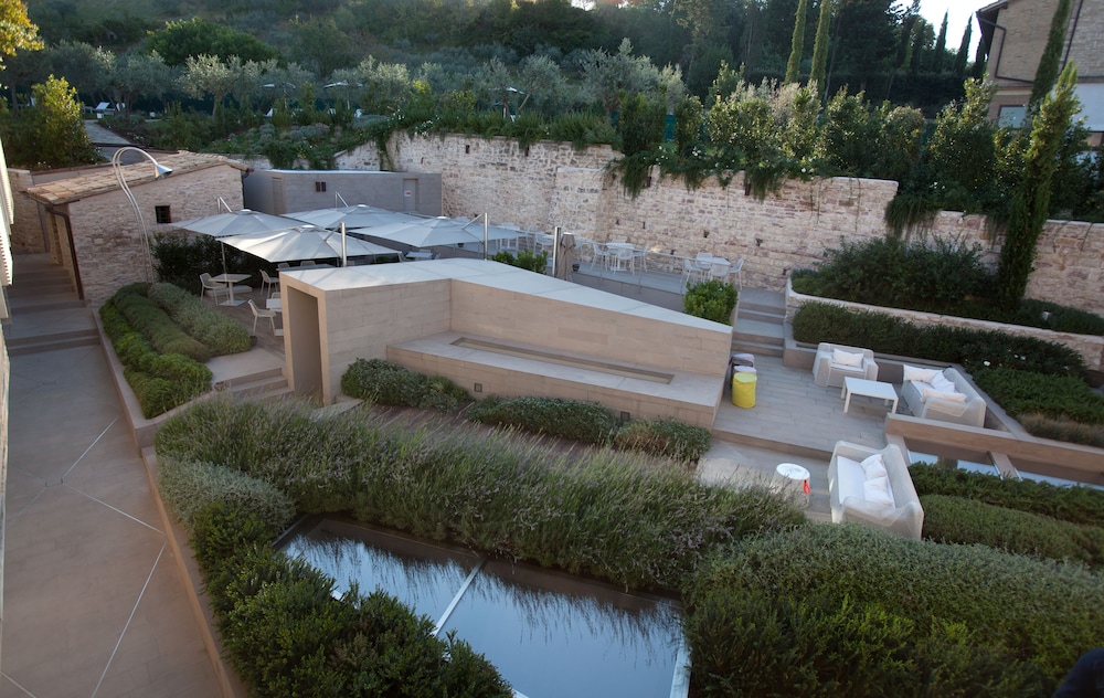 W czasie pobytu w obiekcie takim jak Nun Assisi Relais Spa Museum w mieście Assisi (Historyczne centrum Assisi) zamieszkasz 10 minut samochodem od miejsc takich jak Bazylika św. Franciszka z Asyżu w Papal i Bazylika Matki Bożej Anielskiej. Hotel (w stylu luksusowym) znajduje się 0,3 km od atrakcji takiej jak Katedra św. Rufina i 0,5 km od miejsca takiego jak Santa Maria delle Rose. Poczuj się jak w domu w 18 pokojach, których wyposażenie to lodówka i minibar. Wyposażenie łóżek to piankowy z pamięcią kształtu oraz kołdry puchowe i pościel premium. Bezpłatny przewodowy i bezprzewodowy dostęp do internetu zapewni łączność ze światem, a 32-cal. telewizor LCD i telewizja cyfrowa — rozrywkę. Prywatna łazienka — wyposażenie: prysznic, prysznic z deszczownicą i markowe przybory toaletowe. Udogodnienia biznesowe to bezpłatny przewodowy dostęp do internetu, centrum biznesowe oraz ekspresowe zameldowanie. Ten obiekt typu hotel zapewnia udogodnienia konferencyjne takie jak centrum konferencyjne i sala konferencyjna. Udogodnienia na miejscu to samodzielne parkowanie (za opłatą). Zrelaksuj się w spa, które oferuje masaż, zabiegi na ciało i zabiegi na twarz. Dostępne udogodnienia rekreacyjne to jacuzzi, sauna oraz rowery do wypożyczenia. Ten hotel w stylu Beaux Arts oferuje udogodnienia takie jak bezpłatny bezprzewodowy dostęp do internetu, obsługa portierska oraz usługi niani (za dopłatą). Za opłatą do dyspozycji gości jest wahadłowy autobus kursujący do pobliskich atrakcji. Zjedz coś dobrego w restauracji Benedikto, restauracji gdzie znajduje się doskonale zaopatrzony bar/salon klubowy, gdzie także możesz podziwiać widok na ogród, a nawet zjeść posiłek na świeżym powietrzu. Możesz także zostać w pokoju i skorzystać z całodobowej obsługi pokojowej. Hotel oferuje bezpłatne śniadanie w formie bufetu codziennie od 7:30 do 10:30. Liczba gwiazdek tego obiektu przyznana została przez organizację the local rating authority.