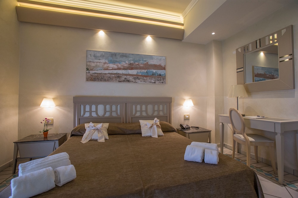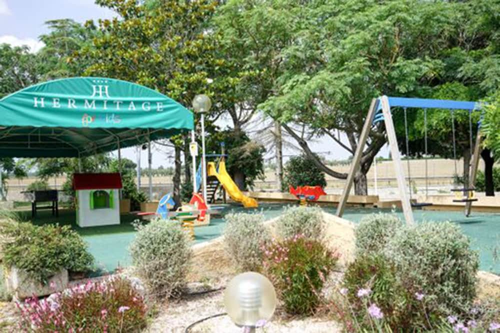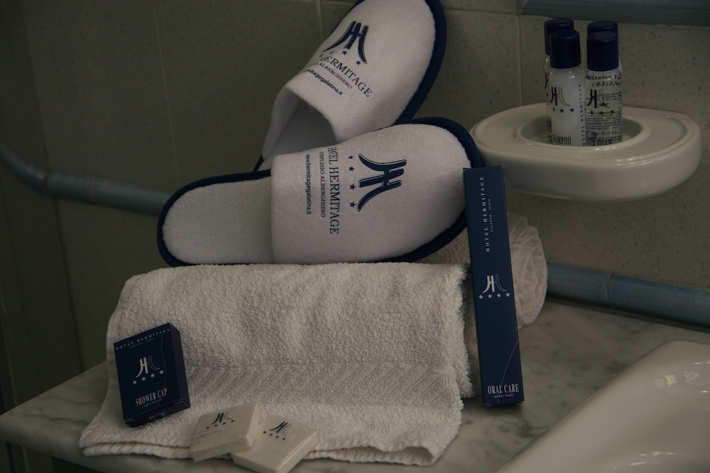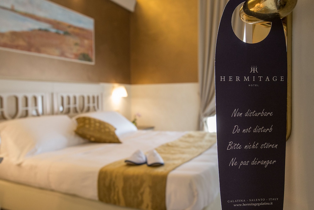 W czasie pobytu w obiekcie takim jak Hotel Hermitage w mieście Galatina znajdziesz się pięć minut samochodem od atrakcji takich jak Tarantismo Museum i Winnica Santi Dimitri Azienda Agricola. Hotel (z atmosferą przyjazną rodzinom) znajduje się 2,5 km od atrakcji takiej jak Bazylika św. Katarzyny Aleksandryjskiej i 8,6 km od miejsca takiego jak Kościół w Cutrofiano. Poczuj się jak w domu w 48 pokojach, których wyposażenie to minibar i telewizor płaskoekranowy. Bezpłatny bezprzewodowy dostęp do internetu zapewni łączność ze światem, a telewizja satelitarna — rozrywkę. Prywatna łazienka — wyposażenie: wanna połączona z prysznicem, bezpłatne przybory toaletowe i bidety. Udogodnienia obejmują sejfy i biurka oraz sprzątanie codziennie. Udogodnienia biznesowe to ekspresowe zameldowanie, ekspresowe wymeldowanie oraz bezpłatne czasopisma w holu. Płatne udogodnienia to transport z i na lotnisko (całą dobę) i odbiór gości z dworca kolejowego. Dostępne udogodnienia rekreacyjne to basen kryty, centrum fitness oraz sezonowy basen odkryty. Ten hotel oferuje udogodnienia takie jak bezpłatny bezprzewodowy dostęp do internetu, obsługa portierska i usługi niani (za dopłatą). Za opłatą do dyspozycji gości jest wahadłowy autobus kursujący do pobliskich atrakcji. Odwiedź restaurację Pulcinella — jest to restauracja, której specjalnością jest kuchnia taka jak kuchnia regionalna i gdzie wydawane są posiłki takie jak obiad i kolacja. Jedzenie i picie serwują również miejsca takie jak kawiarnia oraz do Twojej dyspozycji pozostaje całodobowa obsługa pokojowa. Ożywcze napoje znajdziesz w jednym z lokali: bar/salon klubowy i bar przy basenie. Śniadanie w formie bufetu jest podawane codziennie od 7 do 10 za opłatą. Liczba gwiazdek tego obiektu przyznana została przez organizację the local rating authority.