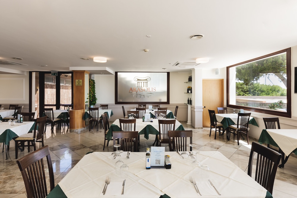 Hotel Ara Solis znajduje się w mieście Taranto, nad morzem, 1 minut samochodem od atrakcji takiej jak Morze Jońskie i 9 minut od miejsca takiego jak Ponte di Porta Napoli. Hotel (przy plaży) znajduje się 9,1 km od atrakcji takiej jak Port Rejsowy Taranto i 9,8 km od miejsca takiego jak Pałac Pantaleo. Poczuj się jak w domu w 64 pokojach, których wyposażenie to lodówka i minibar. Bezpłatny bezprzewodowy dostęp do internetu zapewni łączność ze światem, a telewizja satelitarna — rozrywkę. Wyposażenie łazienki: wanna, bezpłatne przybory toaletowe i bidety. Udogodnienia obejmują sejfy i biurka oraz sprzątanie codziennie. Udogodnienia biznesowe to centrum biznesowe, ekspresowe zameldowanie oraz ekspresowe wymeldowanie. Udogodnienia na miejscu to bezpłatne parkowanie samodzielne. Do pokoju przylegają taras na dachu i ogród, z których roztacza się piękny widok. Dostępne są również takie udogodnienia rekreacyjne, jak basen odkryty. Ten hotel oferuje takie udogodnienia jak bezpłatny bezprzewodowy dostęp do internetu, obsługa portierska i usługi niani (za dopłatą). Twój apetyt zaspokoi La Risacca, restauracja, która specjalizuje się w kuchni takiej jak kuchnia włoska i której podawane są pyszne obiad i kolacja. Możesz też zostać w pokoju i skorzystać z obsługi pokojowej w określonych godzinach. Zrelaksuj się po całym dniu w barze/salonie klubowym. Śniadanie w formie bufetu jest podawane codziennie od 6:30 do 9:30 za opłatą. Liczba gwiazdek tego obiektu przyznana została przez organizację the local rating authority.