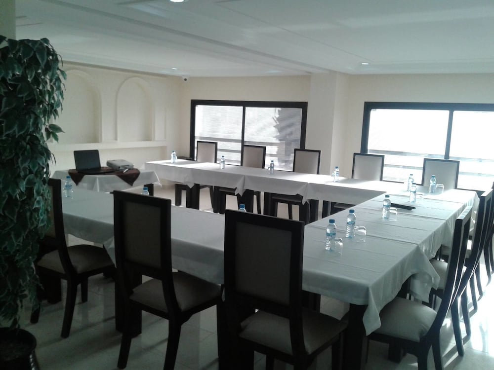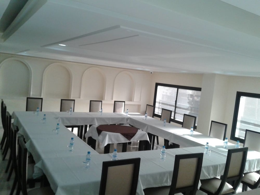 W czasie pobytu w obiekcie takim jak Hotel Al Akhawayn w mieście Oujda zamieszkasz 15 minut piechotą od atrakcji takich jak Centralne Oujda i Bab Sidi Abdel Wahab. Hotel znajduje się 1,1 km od atrakcji takiej jak Kościół św. Ludwika i 1,6 km od miejsca takiego jak Park Lalla Meriem. Poczuj się jak w domu w 36 pokojach, których wyposażenie to lodówka i telewizor płaskoekranowy. Bezpłatny bezprzewodowy dostęp do internetu zapewni łączność ze światem, a telewizja satelitarna — rozrywkę. Prywatna łazienka — wyposażenie: prysznic, bezpłatne przybory toaletowe i bidety. Udogodnienia obejmują sejfy i biurka oraz sprzątanie codziennie. Udogodnienia biznesowe to centrum biznesowe, bezpłatne czasopisma w holu oraz usługi pralni chemicznej. Płatne udogodnienia to transport z i na lotnisko (całą dobę). Dostępna jest także taka usługa jak bezpłatne parkowanie samodzielne. Do pokoju przylega taras, z którego roztacza się piękny widok. Dostępne są również takie udogodnienia, jak bezpłatny bezprzewodowy dostęp do internetu i obsługa portierska. Hotel: znajduje się tutaj restauracja, gdzie wydawane są obiad i kolacja. Jedzenie i picie serwują także miejsca takie jak kawiarnia i do Twojej dyspozycji pozostaje obsługa pokojowa (w określonych godzinach). Hotel oferuje bezpłatne śniadanie w formie bufetu codziennie od 6 do 10:30.