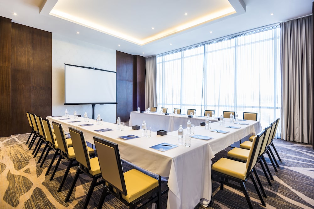 W czasie pobytu w obiekcie takim jak Hyatt Regency San Luis Potosi w mieście San Luis Potosi (Lomas de San Luis) zamieszkasz 10 minut samochodem od atrakcji takich jak Park Tangamanga I i Arenia Casino. Hotel (w stylu luksusowym) znajduje się 1,5 km od atrakcji takiej jak La Loma Centrum Sportowe i 1,9 km od miejsca takiego jak Plac San Luis. Poczuj się jak w domu w 134 oryginalnie udekorowane pokojach, których wyposażenie to lodówka i stacja dokująca do iPoda. Bezpłatny przewodowy i bezprzewodowy dostęp do internetu zapewni łączność ze światem, a 42-cal. Telewizory Smart TV i telewizja kablowa — rozrywkę. Wyposażenie łazienki: prysznic z deszczownicą i suszarki do włosów. Udogodnienia obejmują telefon oraz sejfy na laptopa i biurka. Udogodnienia biznesowe to centrum biznesowe, ekspresowe wymeldowanie oraz usługi pralni chemicznej. Ten obiekt typu hotel oferuje następującą liczbę sal konferencyjnych: 6. Płatne udogodnienia to transport z i na lotnisko (na życzenie). Dostępna jest także taka usługa jak bezpłatne parkowanie przez obsługę. Dostępne udogodnienia rekreacyjne to basen odkryty i całodobowe centrum fitness. Ten hotel oferuje takie udogodnienia jak bezpłatny bezprzewodowy dostęp do internetu, obsługa portierska i sklepy z pamiątkami i czasopismami. W obiekcie takim jak hotel do dyspozycji gości są restauracja, a także całodobowa obsługa pokojowa. Ożywcze napoje znajdziesz w jednym z lokali: bar przy basenie i 2 bary/salony klubowe. Śniadanie w formie bufetu jest podawane codziennie od 6 do południa za opłatą.