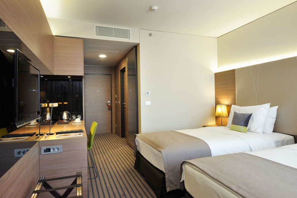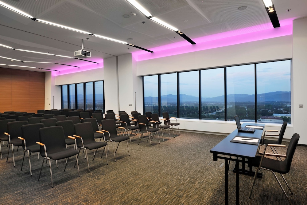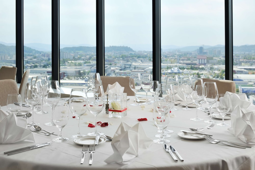 W czasie pobytu w obiekcie takim jak Radisson Blu Plaza Hotel Ljubljana w mieście Ljubljana znajdziesz się blisko centrum handlowego, 10 minut piechotą od atrakcji takich jak Centrum Handlowe City Park i Dzielnica Handlowa BTC. Hotel (w stylu luksusowym) znajduje się 1,2 km od atrakcji takiej jak BTC City i 3,5 km od miejsca takiego jak Stadion Stožice. Poczuj się jak w domu w 237 klimatyzowanych pokojach, których wyposażenie to minibar. Bezpłatny przewodowy i bezprzewodowy dostęp do internetu zapewni łączność ze światem. Prywatna łazienka — wyposażenie: wanny lub prysznice, prysznic z deszczownicą i suszarki do włosów. Udogodnienia obejmują telefon oraz sejfy i biurka. Udogodnienia biznesowe to całodobowe centrum biznesowe, bezpłatne czasopisma w holu oraz usługi pralni chemicznej. Jeżeli planujesz spotkanie w mieście Ljubljana, hotel oferuje centrum konferencyjne oraz sale konferencyjne o łącznej powierzchni 400 m kw. (4306 stopy kwadratowe). Udogodnienia na miejscu to samodzielne parkowanie (za opłatą). Udogodnienia rekreacyjne to centrum fitness. Dostępne są również takie udogodnienia, jak bezpłatny bezprzewodowy dostęp do internetu i sklepy na miejscu. Ten hotel oferuje również udogodnienia takie jak usługi weselne i sala na przyjęcia okolicznościowe. Odwiedź restaurację Plaza Hotel Restaurant — jest to restauracja, której specjalnością jest kuchnia taka jak kuchnia międzynarodowa i gdzie wydawane są posiłki takie jak obiad i kolacja. Jedzenie i picie serwują również miejsca takie jak kawiarnia oraz do Twojej dyspozycji pozostaje obsługa pokojowa (w określonych godzinach). Ożywcze napoje znajdziesz w jednym z lokali: bar/salon klubowy. Hotel oferuje bezpłatne śniadanie w formie bufetu codziennie od 6:30 do 10. Hotelstars Union dokonuje oficjalnej klasyfikacji obiektów noclegowych w tym kraju (Słowenia). Klasyfikacja tego obiektu to 4 star Superior, co przedstawiono na tej stronie jako 4,5-gwiazdkowy.