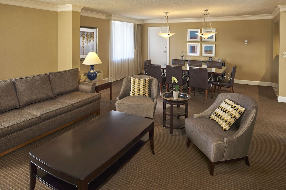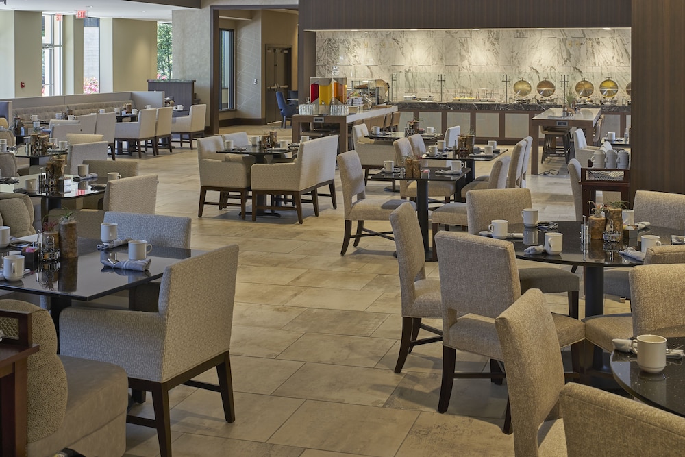 W czasie pobytu w obiekcie Hilton Raleigh North Hills w mieście Raleigh (North Hills) znajdziesz się pięć minut samochodem od atrakcji takich jak North Hills (centrum handlowe) i Pchli targ w Raleigh. Hotel znajduje się 6,7 km od atrakcji takiej jak Kapitol stanu Karolina Północna i 6,8 km od miejsca takiego jak Marbles Kids Museums. Poczuj się jak w domu w 333 pokojach, których wyposażenie to stacja dokująca do odtwarzaczy MP3 i telewizor płaskoekranowy. Bezpłatny przewodowy i bezprzewodowy dostęp do internetu zapewni łączność ze światem, a konsola do gier i telewizja cyfrowa — rozrywkę. Prywatna łazienka — wyposażenie: wanna połączona z prysznicem, bezpłatne przybory toaletowe i suszarki do włosów. Udogodnienia obejmują telefon oraz sejfy na laptopa i biurka. Udogodnienia biznesowe to całodobowe centrum biznesowe, ekspresowe zameldowanie oraz ekspresowe wymeldowanie. Jeżeli planujesz spotkanie w mieście Raleigh, hotel oferuje pomieszczenia konferencyjne oraz 19 sale konferencyjne o łącznej powierzchni 2176 m kw. (23424 stopy kwadratowe). Udogodnienia na miejscu to samodzielne parkowanie (za opłatą). Dostępne udogodnienia rekreacyjne to basen kryty i całodobowe centrum fitness. Ten hotel oferuje również udogodnienia takie jak bezpłatny bezprzewodowy dostęp do internetu, obsługa portierska i sklepy na miejscu. Do dyspozycji gości jest bezpłatny wahadłowy autobus kursujący do pobliskich atrakcji. Twój apetyt zaspokoi restauracja 88 Oaks Carolina Kitchen, restauracja, w której znajduje się doskonale zaopatrzony bar/salon klubowy. Możesz też zostać w pokoju i skorzystać z obsługi pokojowej w określonych godzinach. Śniadania pełne są podawane w dni powszednie od 6:30 do 10, a w weekendy od 6:30 do 11 za opłatą.