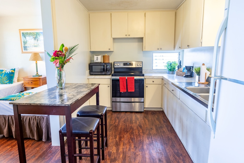 Udogodnienia biznesowe to przechowalnia bagażu i mikrofalówka w części wspólnej. Udogodnienia na miejscu to bezpłatne parkowanie samodzielne. Do pokoju przylega ogród, z którego roztacza się piękny widok. Dostępne są również takie udogodnienia, jak bezpłatny bezprzewodowy dostęp do internetu i teren piknikowy.Mapa Kaua'i Palms Hotel