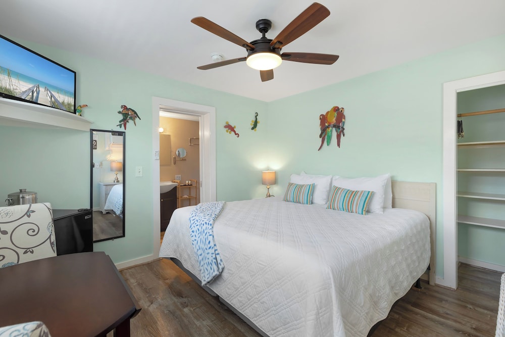 W czasie pobytu w obiekcie The Grand Guesthouse, znajdziesz się w samym centrum miasta takiego jak Key West, a 9 minutę piechotą od Duval Street (ulica) i 11 minut piechotą od Park Pamięci Clarence'a S. Higgsa. Dom gościnny znajduje się 1,1 km od atrakcji takiej jak Plaża South Beach i 1,2 km od miejsca takiego jak Najbardziej wysunięte na południe miejsce w Stanach Zjednoczonych. Poczuj się jak w domu w 10 oryginalnie udekorowane pokojach, których wyposażenie to lodówka i telewizor płaskoekranowy. Wyposażenie łóżek to pillowtop oraz pościel premium. Do pokoju przylega umeblowane patio. Bezpłatny bezprzewodowy dostęp do internetu zapewni łączność ze światem, a telewizja kablowa — rozrywkę. Prywatna łazienka — wyposażenie: prysznic, bezpłatne przybory toaletowe i suszarki do włosów. Odległości są podane z dokładnością do 0,1 kilometra.