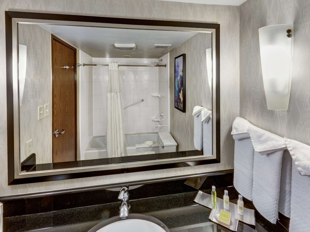 W czasie pobytu w obiekcie takim jak DoubleTree by Hilton Hotel Wichita Airport in Wichita zamieszkasz w dzielnicy biznesowej, 10 minut samochodem od atrakcji takich jak INTRUST Bank Arena (hala widowiskowo-sportowa) i Bowlero Northridge. Hotel znajduje się 18,5 km od atrakcji takiej jak Wichita State University i 5,8 km od miejsca takiego jak FlightSafety Textron Aviation Training - Wichita Maintenance. Poczuj się jak w domu w 302 klimatyzowanych pokojach, których wyposażenie to telewizor LED. Wyposażenie łóżek to pillowtop oraz kołdry puchowe i pościel premium. Bezpłatny bezprzewodowy dostęp do internetu zapewni łączność ze światem, a telewizja cyfrowa — rozrywkę. Prywatna łazienka — wyposażenie: wanna połączona z prysznicem, bezpłatne przybory toaletowe i suszarki do włosów. Udogodnienia biznesowe to całodobowe centrum biznesowe, ekspresowe zameldowanie oraz ekspresowe wymeldowanie. Jeżeli planujesz spotkanie w mieście Wichita, hotel oferuje pomieszczenia konferencyjne oraz 13 sale konferencyjne o łącznej powierzchni 2044 m kw. (22000 stopy kwadratowe). Bezpłatne udogodnienia to transport z lotniska i na lotnisko (całą dobę). Dostępne udogodnienia rekreacyjne to basen kryty i całodobowe centrum fitness. Ten hotel oferuje udogodnienia takie jak bezpłatny bezprzewodowy dostęp do internetu, obsługa portierska i usługi weselne. Do dyspozycji gości jest bezpłatny wahadłowy autobus kursujący do pobliskich atrakcji (zasięg: 3 mile). Spróbuj dań kuchni takiej jak kuchnia amerykańska, które serwuje Chisholm's, restauracja, gdzie znajduje się doskonale wyposażony bar/salon klubowy. Możesz też zostać w pokoju i skorzystać z obsługi pokojowej w określonych godzinach. Śniadania pełne są podawane w dni powszednie od 6 do 9, a w weekendy od 7 do 10 za opłatą.